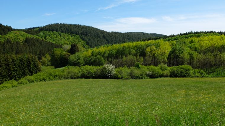 À quelques mètres du parking, près de l'église, ce magnifique circuit de randonnée commence par traverser de belles forêts sur de larges chemins très praticables. Après environ 2,5 km, le chemin devient très varié. Il passe par des chemins de prairie, de magnifiques forêts mixtes et monte jusqu'à un point de vue fantastique sur le petit village de Wallenborn, niché dans un paysage de rêve.
