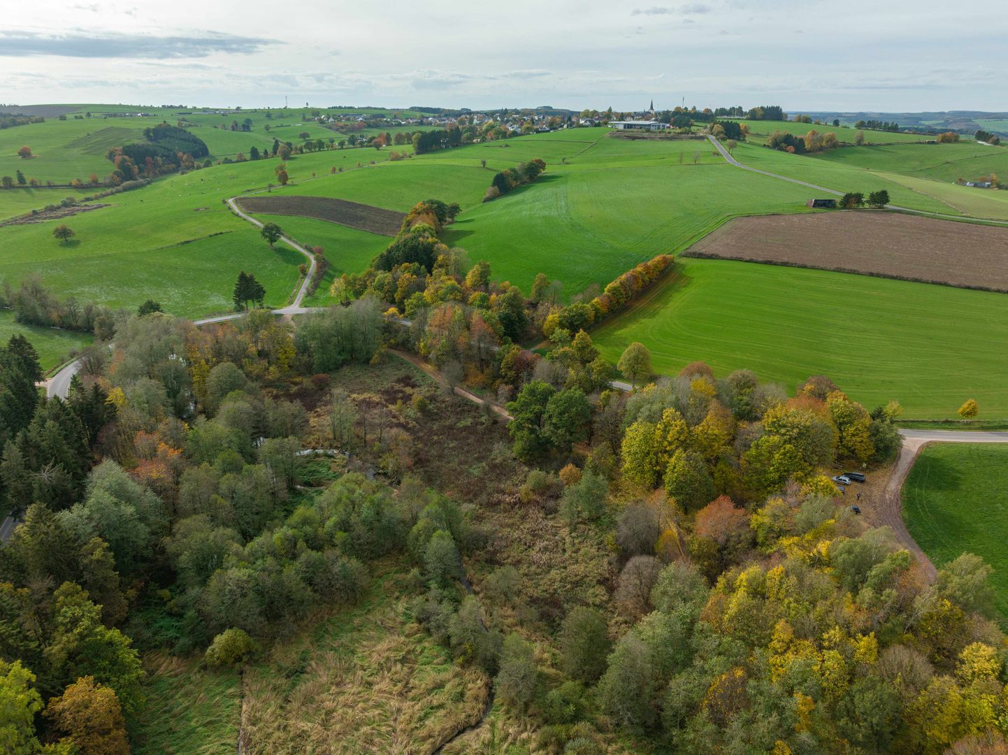 Notez également les biotopes particulièrement protégés (prairies humides, roselières, forêt marécageuse d'aulnes). Le lac de loisirs artificiel est alimenté par l'"Auwbach", un cours d'eau proche de l'état naturel.