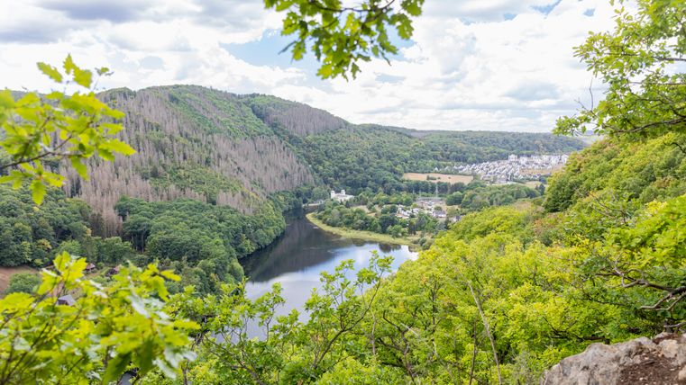 Le point de départ du sentier de randonnée est le "parking Über Rur" dans la paisible ville de Heimbach. En raison de son nombre d'habitants, cette localité est la plus petite ville de Rhénanie-du-Nord-Westphalie. Les visiteurs ne seront pas déçus : avec ses maisons à colombages rustiques, son château médiéval Hengebach et sa situation idyllique en bordure du parc national de l'Eifel, Heimbach constitue le point de départ idéal pour des excursions dans la nature. Avant de partir en randonnée, tu peux t'informer au Nationalpark-Tor sur le parc national ainsi que sur les sentiers de randonnée régionaux.