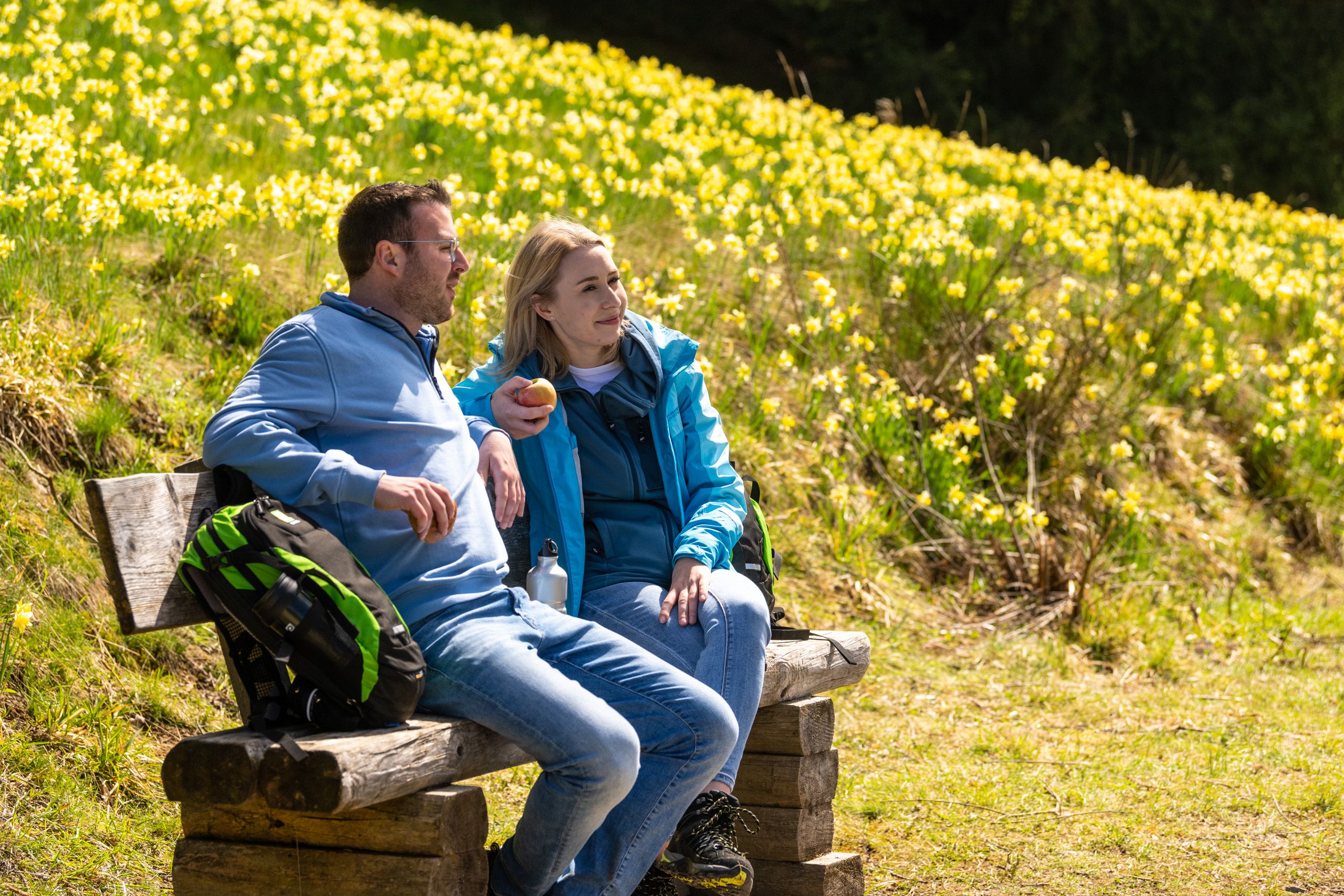 Tu te demandes d'où vient le nom de cette randonnée ? Au printemps, des milliers et des milliers de jonquilles jaunes et blanches transforment les prairies le long du parcours en une mer de fleurs colorées et parfumées. C'est pourquoi la randonnée de la Route des Narcisses est particulièrement recommandée au printemps, plus précisément de début avril à début mai. Le bistrot "Alte Molkerei" près de la porte du parc national de Monschau-Höfen est une bonne possibilité de faire une pause avant ou après la randonnée.