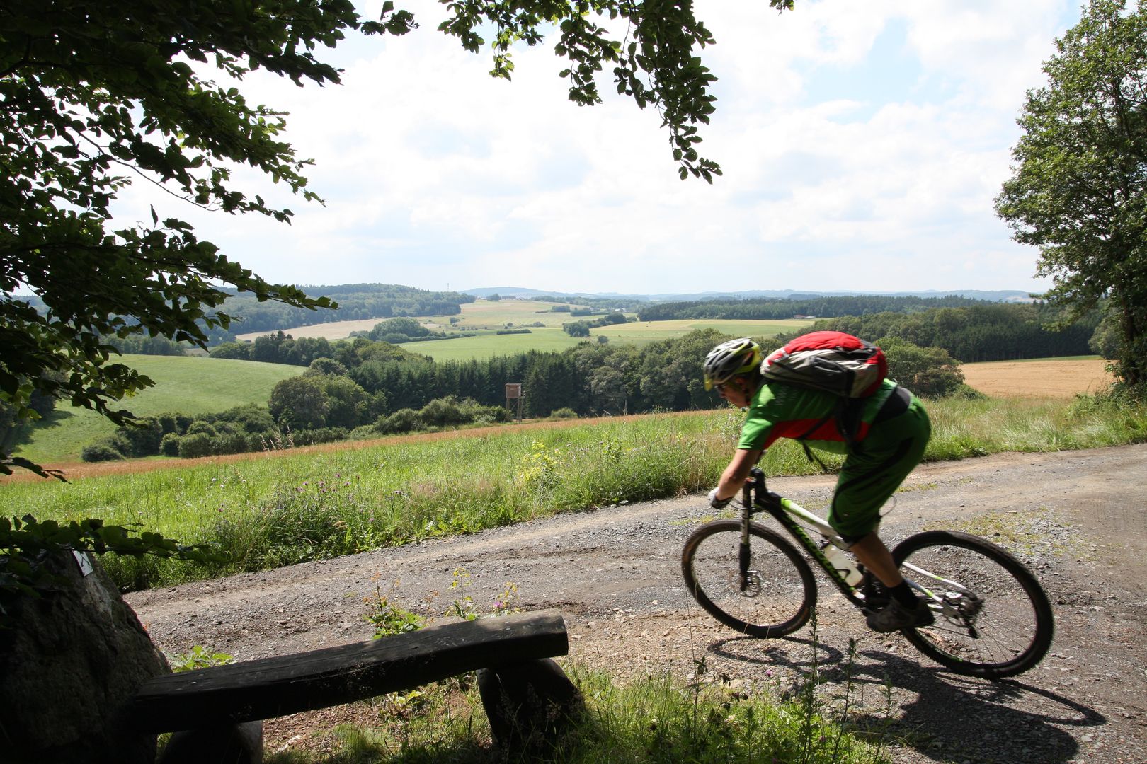 La visite bien balisée commence à la sortie de la ville historique d'Adenau, au magasin de vélo Breuer. L'endroit est brièvement touché et l'itinéraire plonge dans le paysage forestier dense et mixte du Hocheifel. Au début, l'itinéraire est plutôt doux avec de petites montées, mais après un bon 12 km, l'itinéraire devient plus sportif et plus exigeant avec des montées et des descentes croissantes. Des vues magnifiques et des passages forestiers inondés de lumière alternent et sont caractéristiques du tour rapide des montagnes russes.