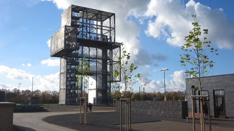 *Alternativement, vous pouvez suivre le chemin légèrement à droite après avoir quitté le premier rond-point de la Getrudisstraße. De là, après cinq kilomètres, vous passez devant le lac de Lucherberg et arrivez à l'Indemann. Par sa taille et son emplacement, perché sur le Goltsteinkuppe, l'Indemann est le symbole visible de loin des perspectives que l'Indeland offre à ses habitants. Son architecture moderne symbolise l'avenir technique de la région, sa lueur changeant constamment dans l'obscurité symbolise le changement structurel dans le bassin de lignite, sa stabilité symbolise l'histoire de l'Indeland qui s'étend sur plus de 10.000 ans. L'emblème de 36 mètres de haut pointe son bras vers le paysage changeant de l'exploitation à ciel ouvert d'Inden. Depuis les nombreuses plates-formes d'observation, l'observateur a une vue panoramique étendue et spectaculaire.