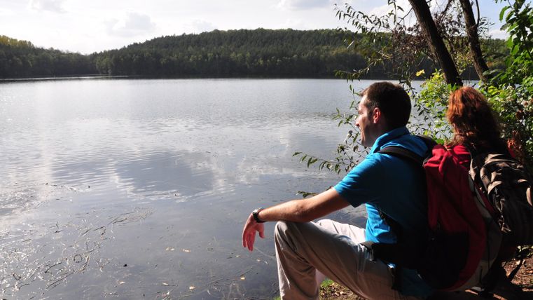 Si le début de la 6e étape du sentier de randonnée du Römerkanal est encore constitué de prairies verdoyantes et plates, on traverse bientôt de petites localités aux bâtiments historiques remarquables. On s'enfonce à nouveau dans une vaste zone forestière avec de grands et petits lacs situés de manière romantique. Il n'est pas facile de s'imaginer que l'on se trouve ici au milieu d'une ancienne mine à ciel ouvert et à proximité de Bonn et de Cologne. Le paysage de lacs est un bel exemple de mesures de renaturation réussies.