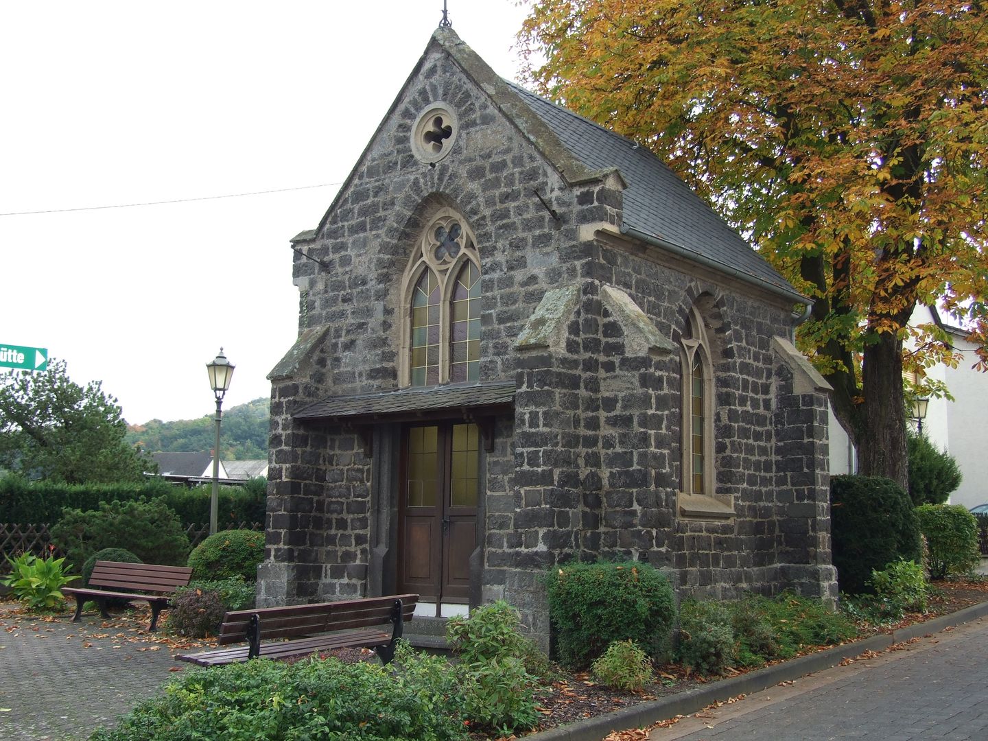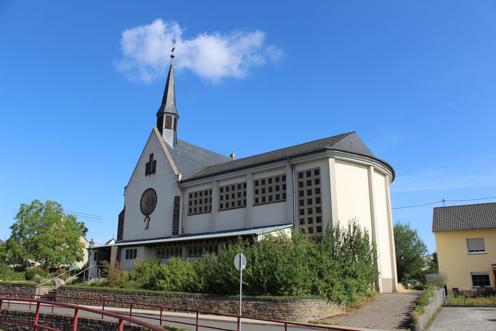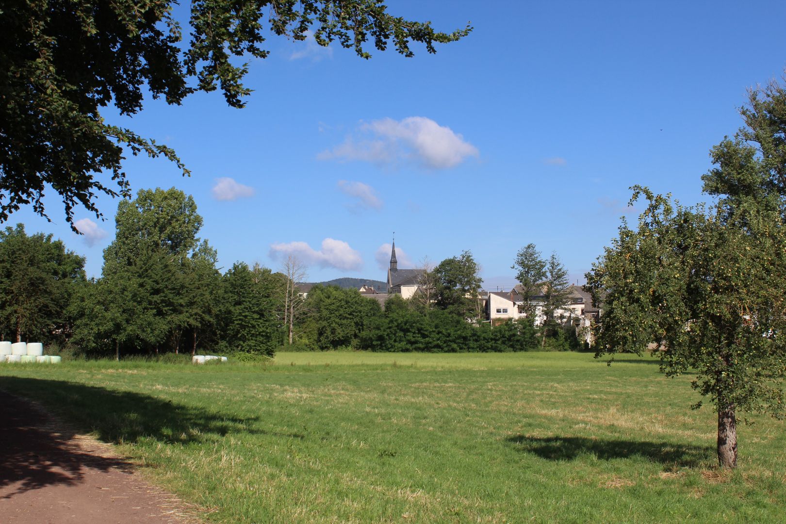 Depuis le parking, descendez la rue principale à gauche. Ensuite, vous tournez deux fois à droite, d'abord dans la rue "In der Hohl" et ensuite dans le "Hahnenwiesenweg". Vous longez le "Krufter Bach" jusqu'à ce que vous aperceviez une passerelle sur votre gauche, que vous empruntez. Arrivé de l'autre côté, vous suivez la route jusqu'à ce qu'un petit sentier débouche à droite. Suivez le sentier le long du "Krufter Bach", en traversant une route. Au bout du parc avec un petit terrain de football, restez à gauche et tournez ensuite à droite sur le Plaidter Weg. Suivez-le jusqu'à ce qu'il devienne la Kondstraße, sans tenir compte des routes qui bifurquent. Continuez tout droit dans la Kondstraße et vous arriverez au croisement où se trouve la chapelle Wingertskapelle sur votre gauche. Là, suivez la route "Wingertsberg" sur votre gauche pour monter sur le "Korret". Arrivé en haut, vous apercevrez la chapelle Johanneskapelle un peu plus haut. Suivez le chemin tout droit et restez à droite à la prochaine occasion. Avec une vue magnifique, le chemin continue à contourner le Korret jusqu'à ce que vous arriviez à la bifurcation en direction de Kretz, que vous suivez à droite pour descendre dans le village. Vous passez devant l'entreprise Zöller, puis vous traversez un pont avant de retrouver la rue "In der Hohl". Suivez-la un peu, puis tournez à gauche dans la rue principale que vous suivez tout droit pour revenir à l'église.
