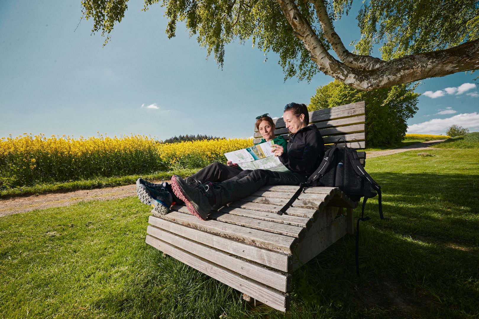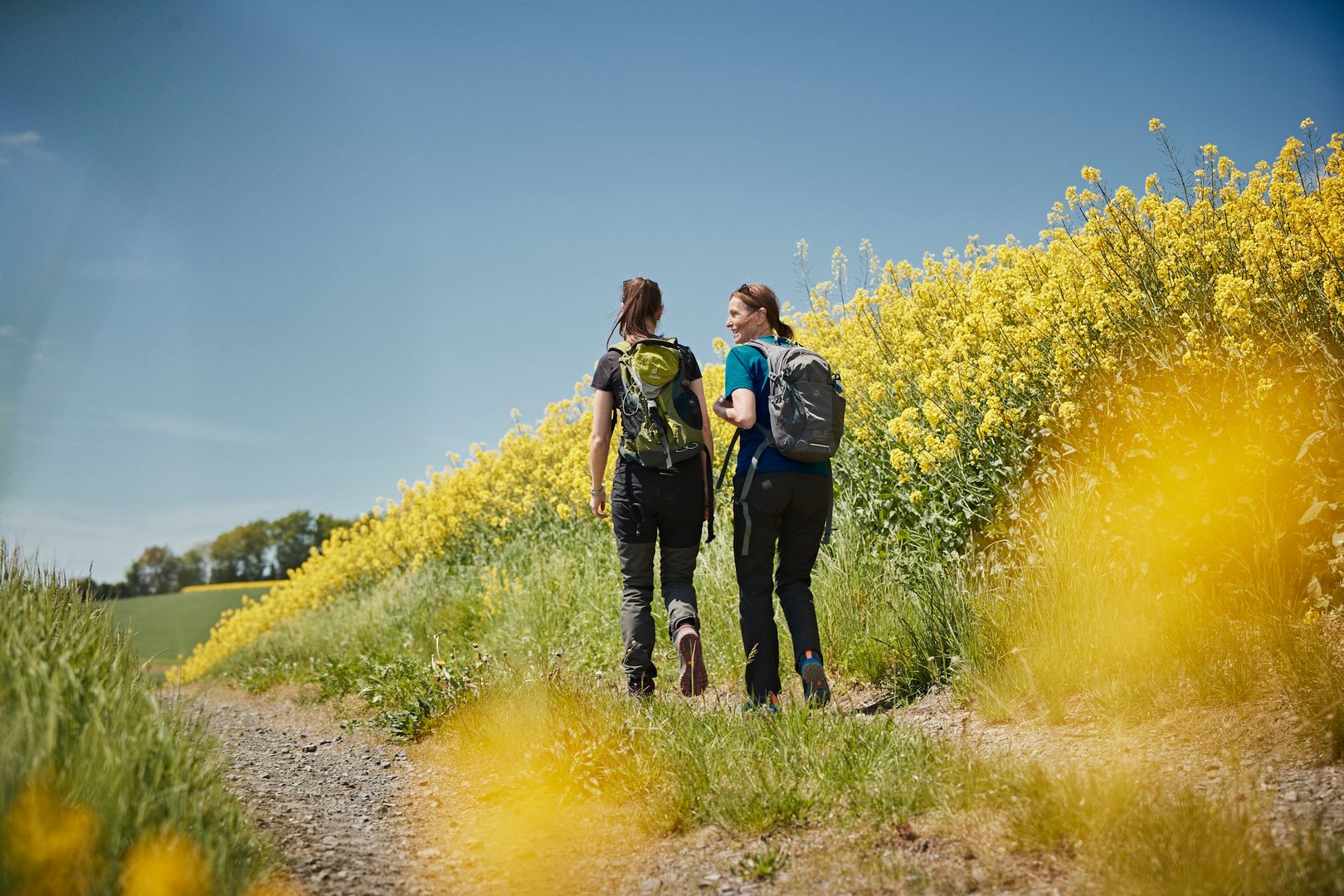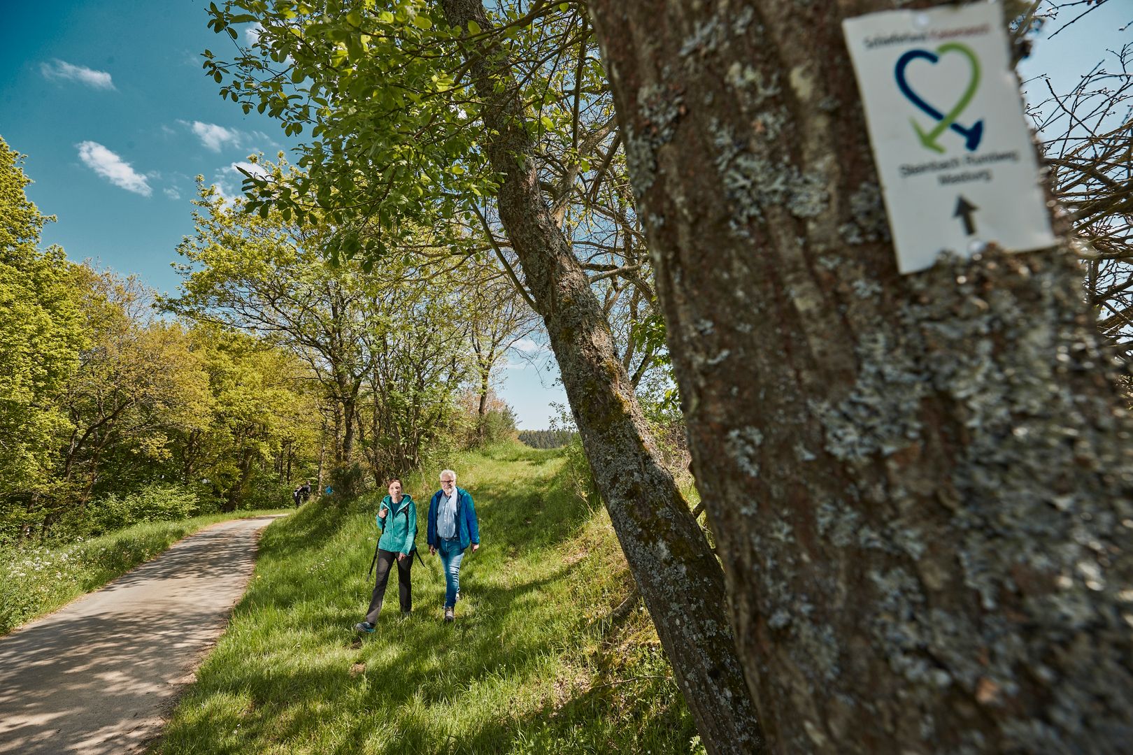 Depuis la gare d'Urmersbach, on pourrait entreprendre un pèlerinage jusqu'à Saint-Jacques-de-Compostelle, car le circuit rejoint ici brièvement le célèbre chemin de Saint-Jacques. Le Gallberg, point culminant du pays de l'ardoise de Kaisersesch, n'est pas le seul à offrir un regard lointain. Sur de nombreux tronçons de l'itinéraire, des vues panoramiques sur la vallée de la Moselle jusqu'au Hunsrück donnent un sentiment de grande liberté - en toute décontraction, sans les efforts d'autrefois.