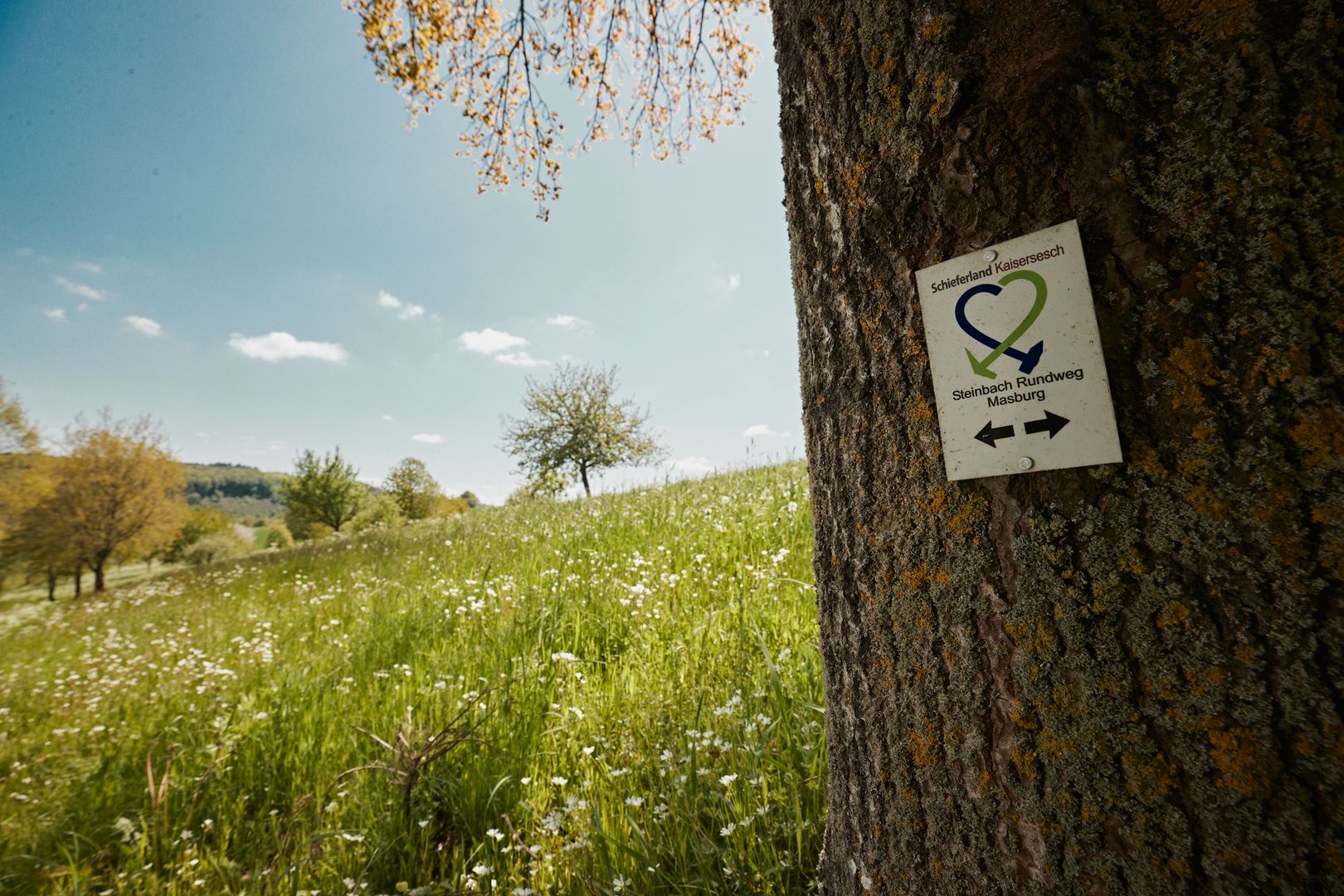 Le circuit Steinbach Masburg, d'une longueur de onze kilomètres bien praticables, traverse des prairies et des forêts à proximité de la petite ville de Kaisersesch dans l'Eifel. Ici, le long du Steinbach, les hommes ont construit de nombreux moulins dans l'isolement de la nature, ce qui stimule aujourd'hui l'imagination. L'ancienne carrière d'ardoise Constantia témoigne également de la force des hommes à extraire de la valeur du sol sous leurs pieds, tandis que les villages de Masburg, Hauroth et Urmersbach ont une histoire riche en travaux.