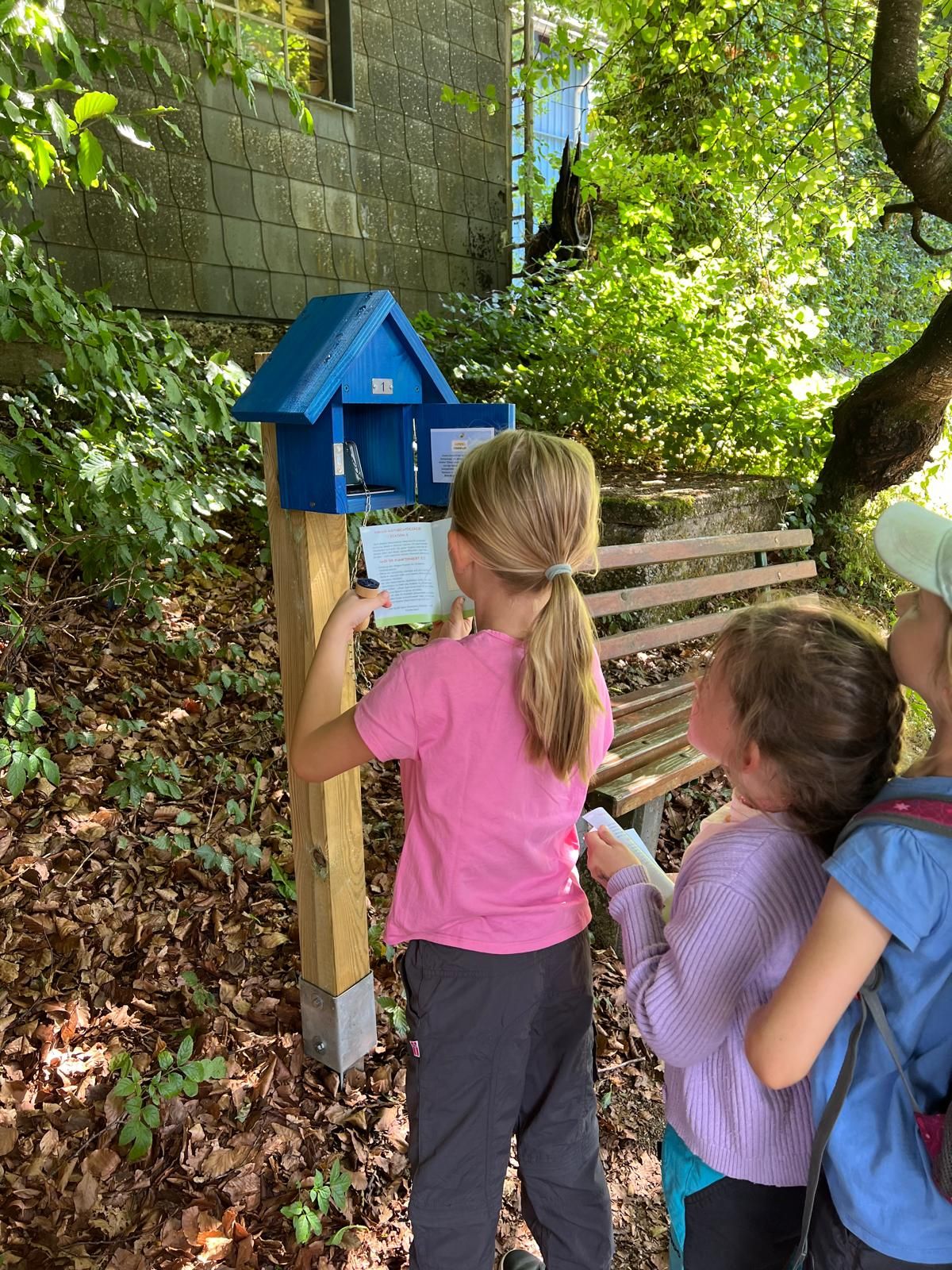 Un astérisque est marqué dans le cahier à côté de quatre cabanes à tampons. Les enfants y trouvent en outre un chiffre qu'ils doivent mémoriser. Au bout du chemin, la combinaison de ces chiffres donne le code d'une armoire au trésor. Celui-ci contient une petite récompense pour chaque enfant. Les récompenses sont en grande partie fabriquées à la main par les femmes rurales de Rohren et Widdauer et les Landmädels, par exemple des petites abeilles au crochet.