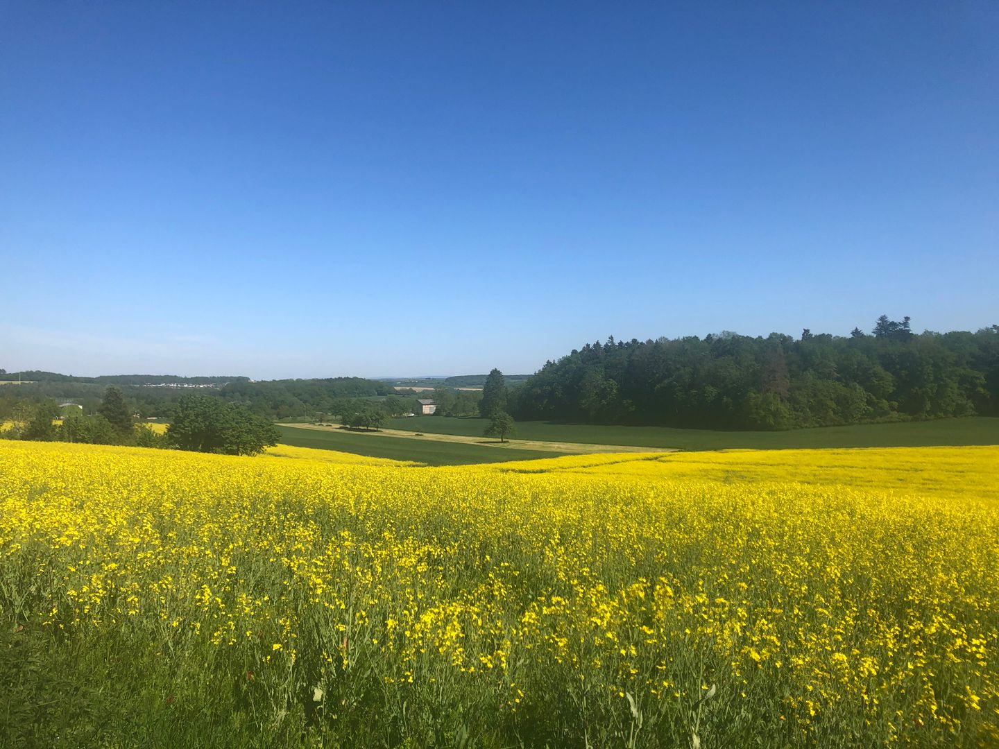 Cette randonnée à vélo vous mène de Bitburg, la ville de la bière, à l'aérodrome de Bitburg. Le chemin ne fait qu'un petit bout sur l'ancienne base aérienne américaine et l'actuel centre commercial, de services et de loisirs. La piste cyclable nous mène à Scharfbillig, puis en direction de Röhl, en passant par des champs et des champs. Les vastes plateaux offrent toujours des vues de rêve. Un banc vous invite à faire une pause et à laisser votre âme vagabonder.