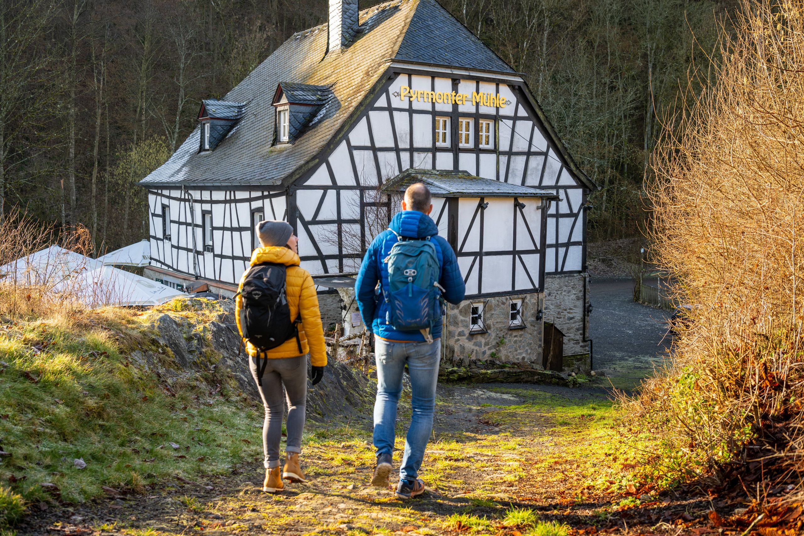 Le sentier de rêve Pyrmonter Felsensteig commence de manière spectaculaire directement au moulin de Pyrmonter Mühle avec ses cascades rugissantes. Un chemin forestier tranquille mène jusqu'aux hauteurs fertiles du Maifeld. On y traverse des champs de colza en fleurs au printemps ou des céréales ondoyantes en été. La randonnée offre de larges vues sur le château de Pyrmont ou sur les cônes volcaniques de l'Eifel de l'Est, avant de redescendre dans la vallée sauvage et boisée de l'Elz à travers la réserve naturelle du Juckelberg. Après le château de Pyrmont, on plonge dans le "royaume des rochers" avec des grottes entourées de lierre, des falaises abruptes et des vues pittoresques sur le château.