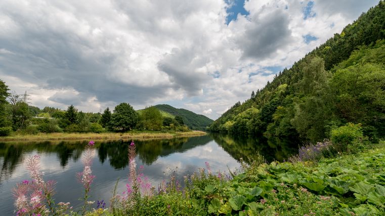Plus loin (et toujours sur la piste cyclable RurUfer), vous passez devant quelques clubs de sports nautiques et arrivez au parking de l'Eschauel. Au parking, continuez tout droit et longez la rive sur 4 km jusqu'au "Seehof" et à l'embarcadère de la navigation. Après la barrière, tourner à gauche et descendre à droite dans la forêt. En bas, prendre à gauche la route de Brementhal. À la chapelle Nepomuk, tourner à droite et continuer à descendre jusqu'au Nationalpark Tor Heimbach, la fin de ce circuit.