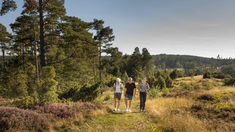 En empruntant les chemins forestiers qui suivent, vous atteignez le domaine forestier de Schirmau. Le chemin mène à gauche derrière le domaine forestier jusqu'à la tour panoramique "Weiselstein". À la fin de l'été, un petit morceau de bruyère entouré de genévriers fleurit près de la tour panoramique Weiselstein. La randonnée se poursuit à travers les champs et les prairies jusqu'au village de Schalkenbach. Sur le chemin du retour vers Königsfeld, vous rencontrerez d'autres sculptures et d'anciennes croix de chemin. Au niveau de la L83, vous traversez le Vinxtbach et la route. Tournez à droite et empruntez le trottoir de la L83. Vous traverserez le nouveau quartier de Königsfeld en montant sur la gauche et reviendrez au point de départ.