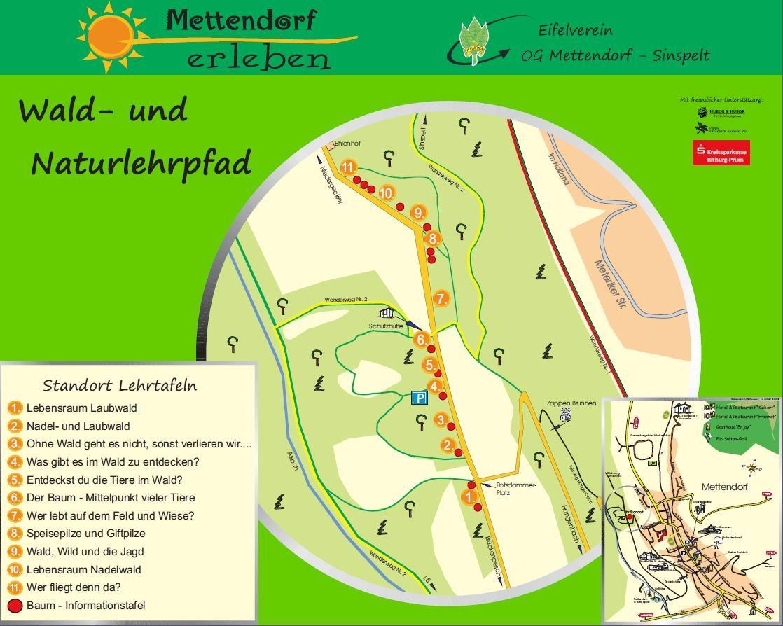 Le sentier forestier et naturel aménagé par l'association Eifelverein Mettendorf-Sinspelt se trouve sur la colline Helijeberg, dans un cadre panoramique des plus agréables.