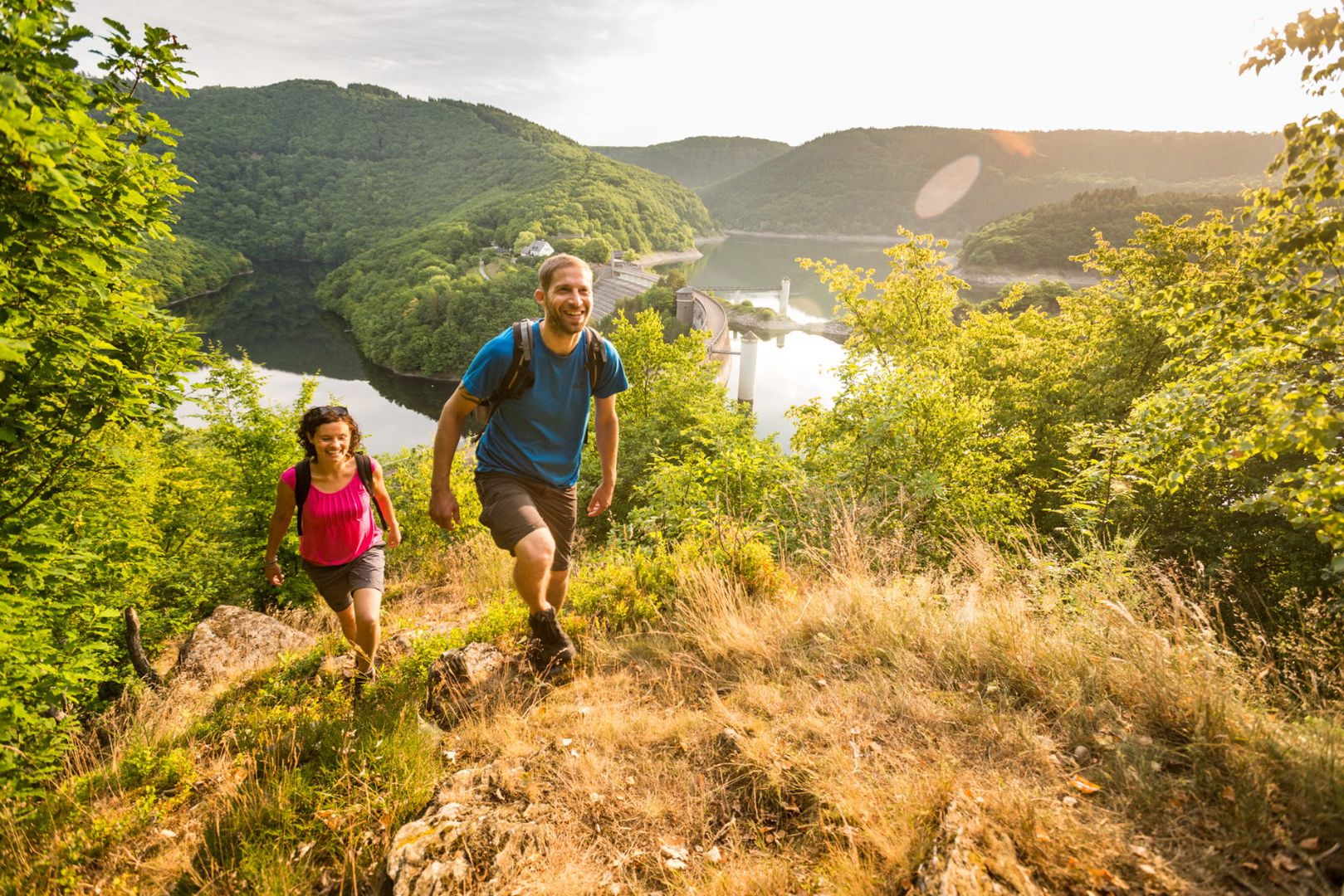 Sur les 313 km de l'Eifelsteig, les randonneurs peuvent vivre intensément les facettes du paysage de moyenne montagne de l'Eifel. Sous la devise "Là où le rocher et l'eau t'accompagnent", les 15 étapes journalières entre Aix-la-Chapelle-Kornelimünster en Rhénanie-du-Nord-Westphalie et Trèves en Rhénanie-Palatinat proposent un voyage de découverte varié à travers les paysages uniques de l'Eifel : les paysages de tourbières et de landes des Hautes Fagnes, la vallée rocheuse de la Roer avec ses lacs de barrage et le parc national de l'Eifel, les falaises calcaires, les cônes et les maars de l'Eifel volcanique, les cours d'eau de la Lieser et de la Kyll ainsi que les falaises de grès bigarré au nord de Trèves.