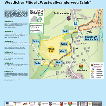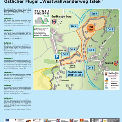 Près de Großkampenberg, deux lignes de bosses (obstacles antichars en béton), techniquement différentes, ont été conservées et accompagnent les deux parties du sentier de randonnée Islek du Westwall à travers le paysage.