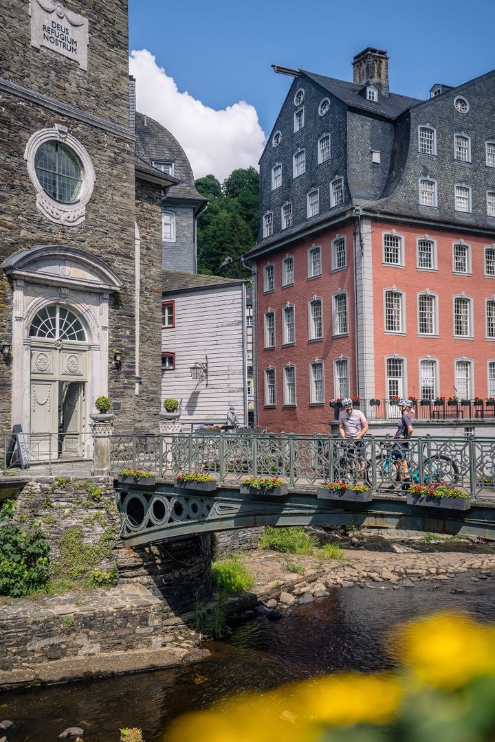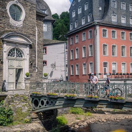 Le circuit te mènera tout d'abord de Kalterherberg à Monschau en passant par la magnifique vallée de la Roer. Cette ancienne ville de drapiers, située dans un cadre idyllique, invite à s'attarder. Ici, rien ou presque n'a changé dans le paysage urbain depuis près de 300 ans : Une idylle à colombages et des constructions en pierre de taille, qui n'ont pas leur pareil aujourd'hui.
