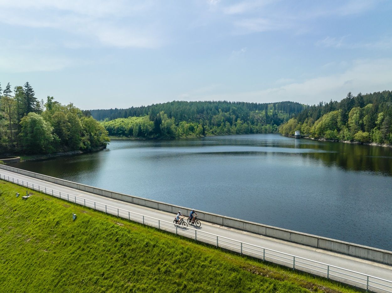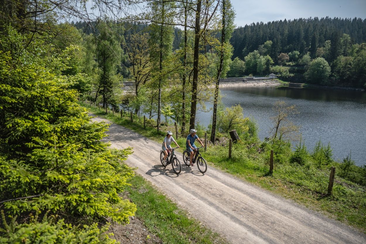 Le circuit commence dans la station climatique d'Einruhr - des sources claires, de l'air frais et le lac de la Roer juste devant la porte. D'Einruhr, tu iras à Woffelsbach, où l'énergie hydraulique se montre sous son aspect le plus vivant - comme source d'énergie, expérience de la nature et plaisir de loisirs. L'itinéraire te mènera ensuite au barrage de Kall, où tu en apprendras plus sur le cycle de l'eau dans les forêts - un endroit où la nature et la technique s'imbriquent de manière particulière. Le long de la Paustenbacher Venn, à travers de vastes marais et des ruisseaux tranquilles, tu atteindras finalement Monschau. Dans la vieille ville historique s'ouvre une fenêtre sur l'époque de la draperie, lorsque l'eau de la Roer faisait tourner les métiers à tisser et marquait la vie de la région. Le retour à Einruhr se fait à travers la vallée idyllique de la Roer. À la fin du circuit, tu pourras laisser tes pieds se balancer dans le jardin aquatique près de la maison des pierres curatives et laisser la force bienfaisante de l'eau agir sur toi en toute tranquillité.