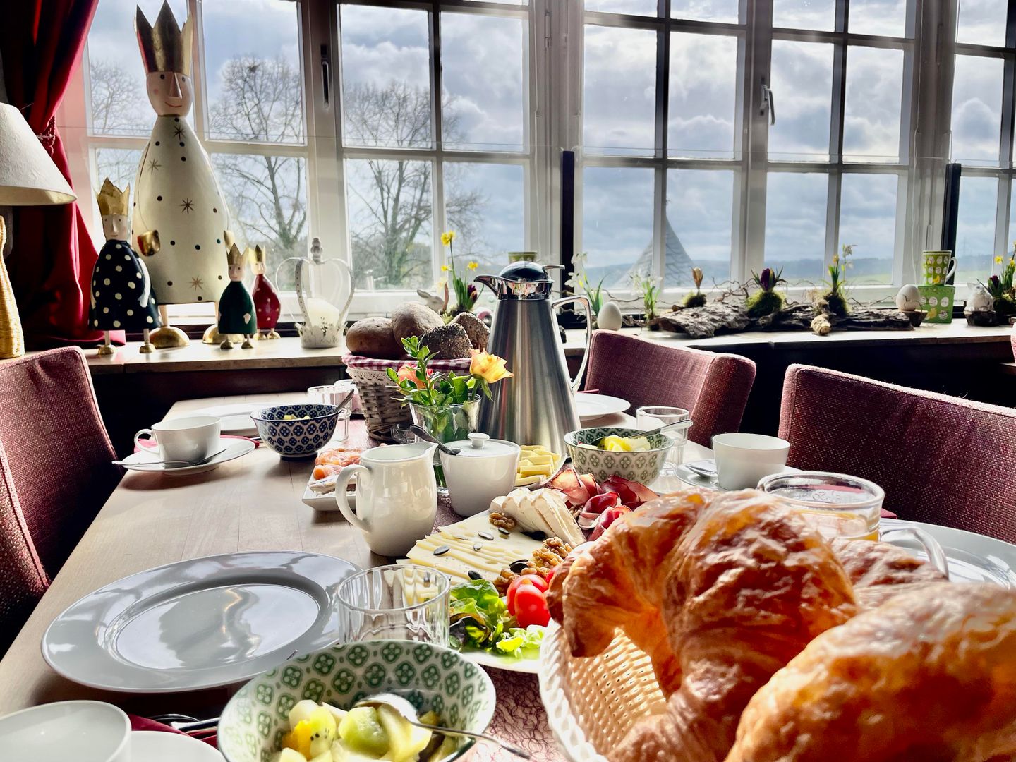 Pendant la journée, vous pourrez déguster des petits plats et des gâteaux faits maison dans notre crêperie/café. Le soir, les plats de notre menu supérieur à la carte sont servis avec des produits régionaux et de saison. (Congés crêperie/café : du lundi au mardi, restaurant à la carte : du dimanche au mercredi)