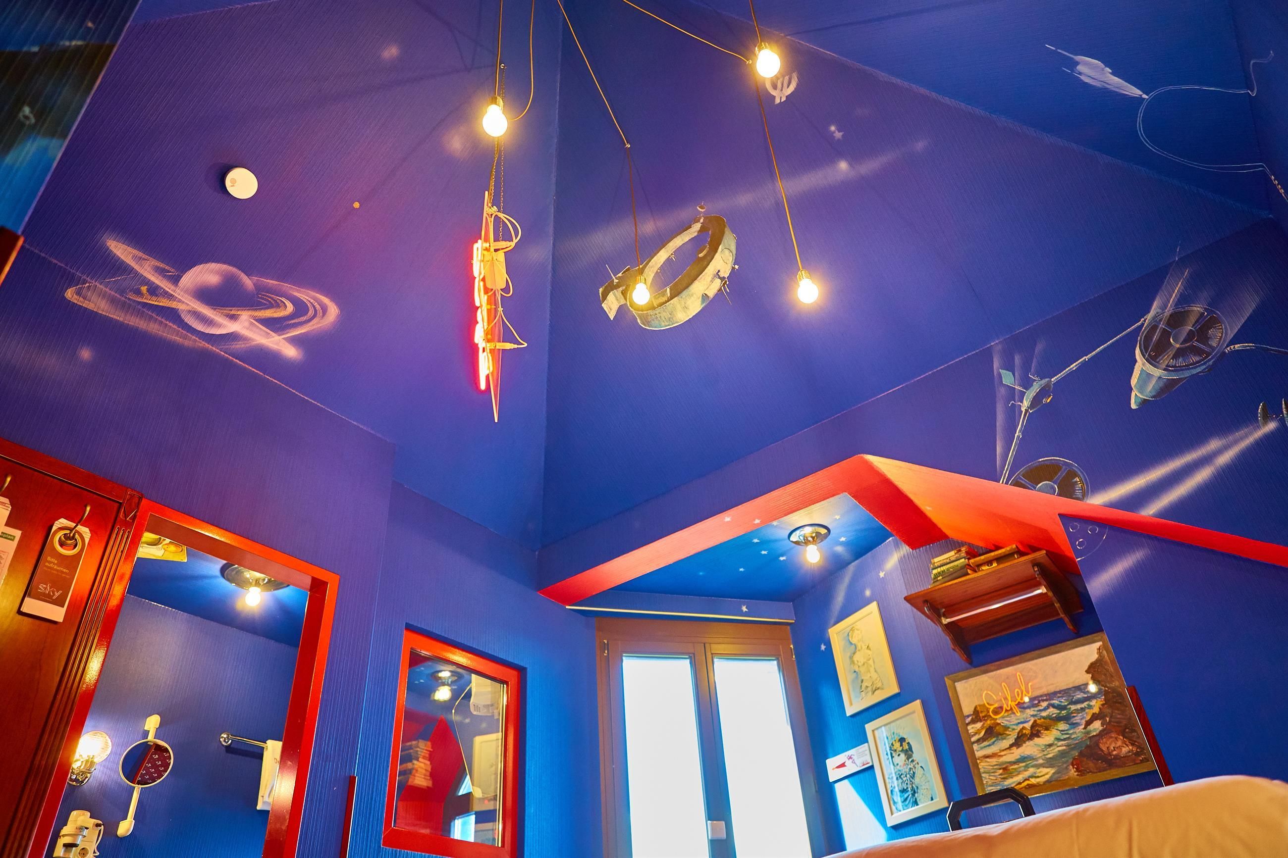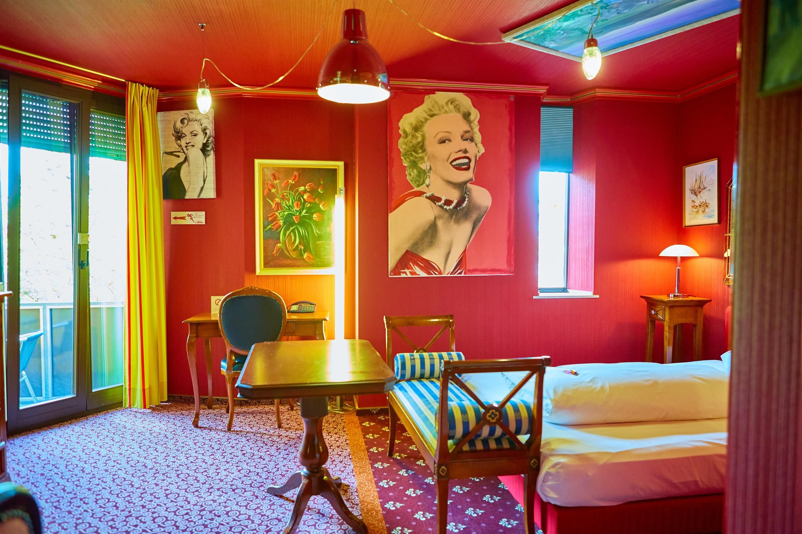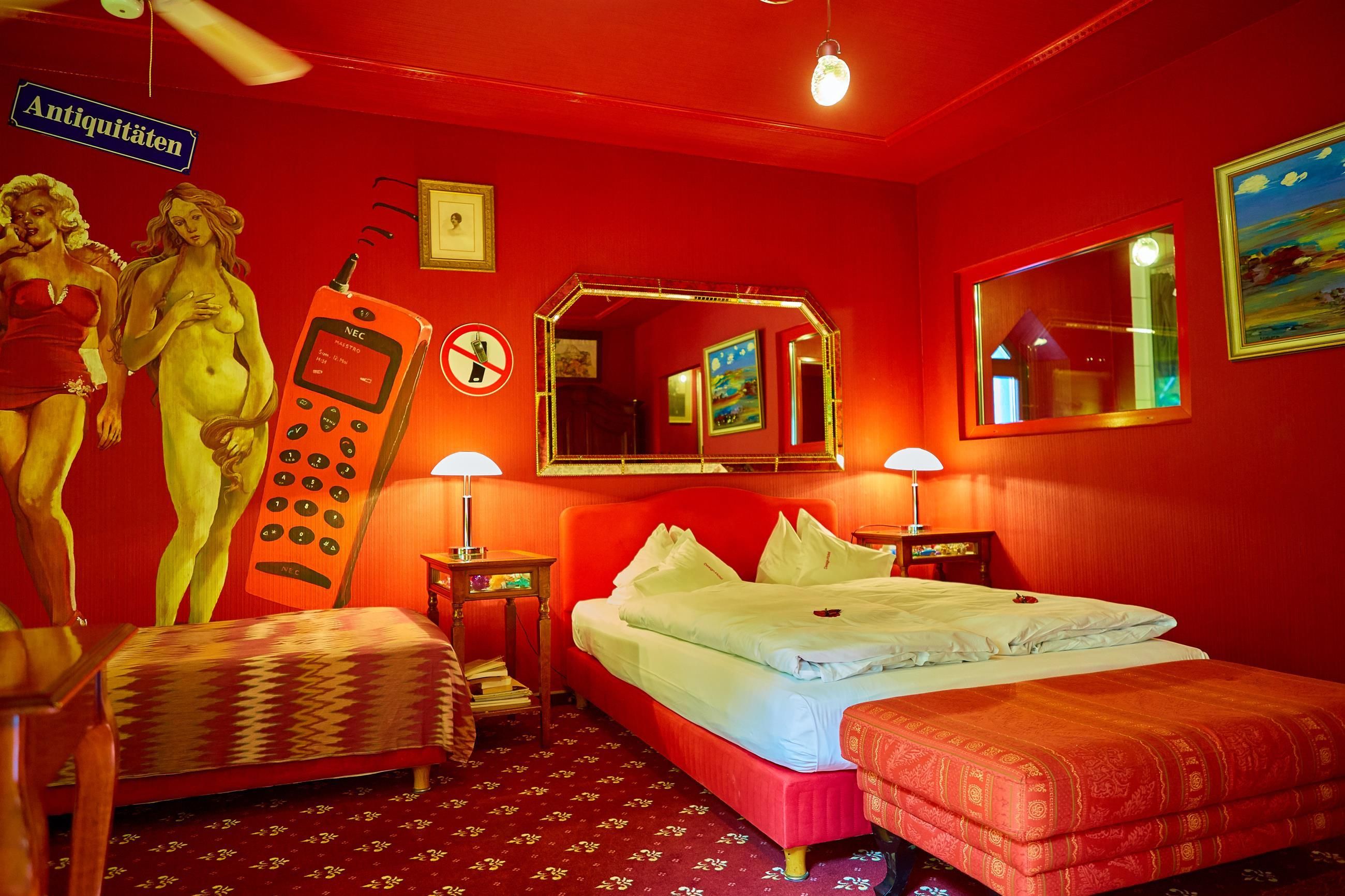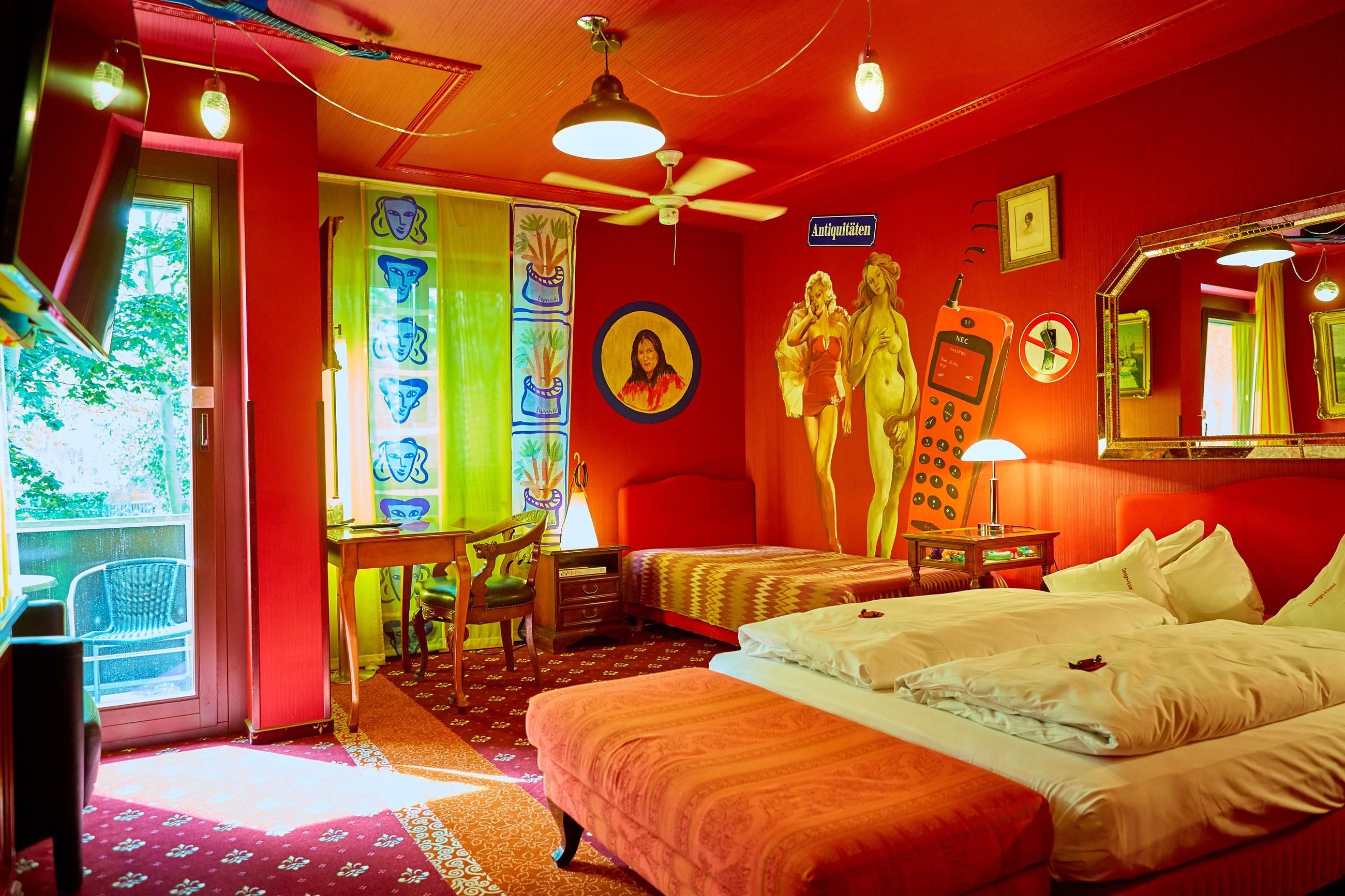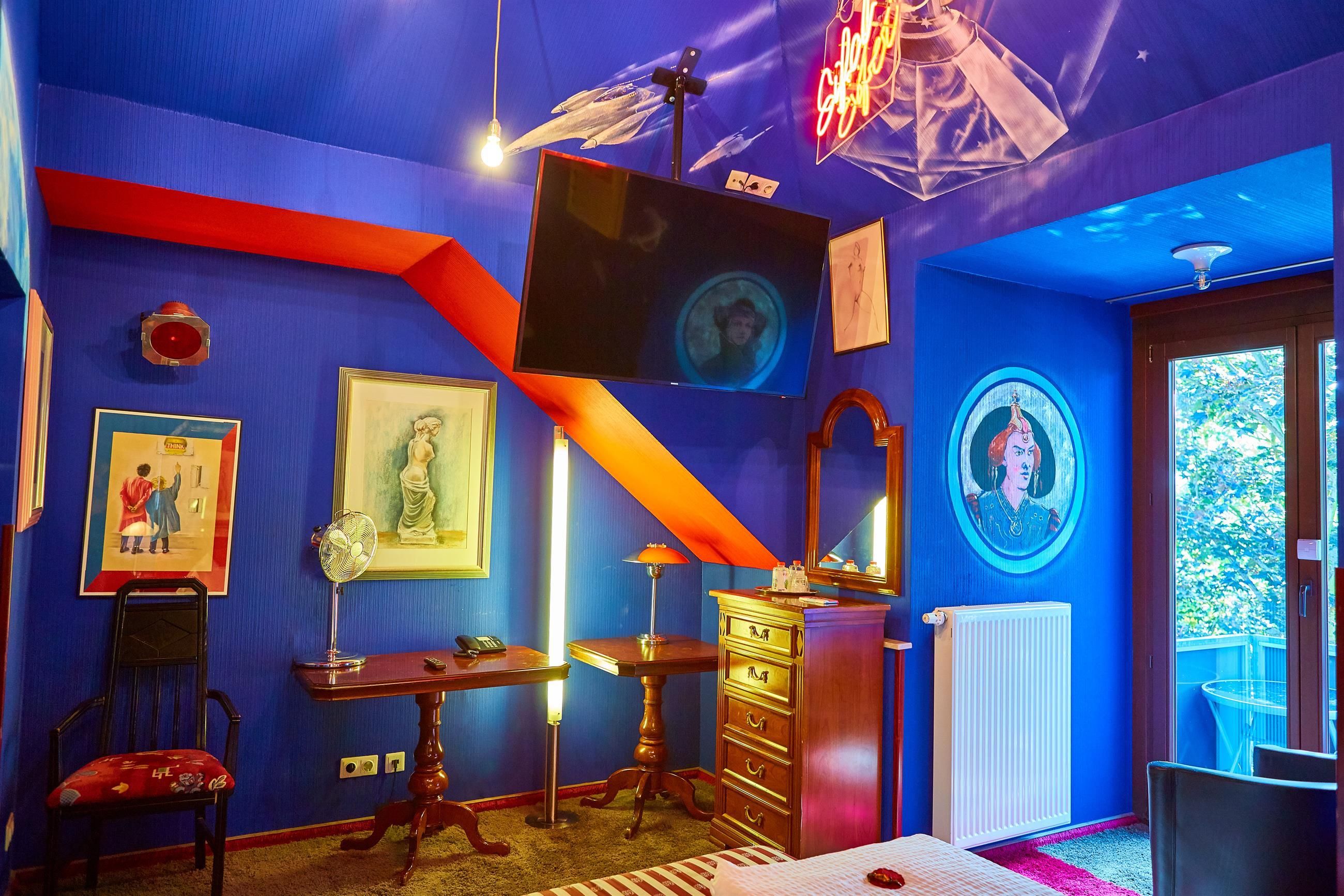 Chaque chambre est unique : à l'aide de couleurs, de tableaux, de peintures murales et de matériel de décoration, on a réussi à créer ici une maison axtravagante. Laissez-vous surprendre.