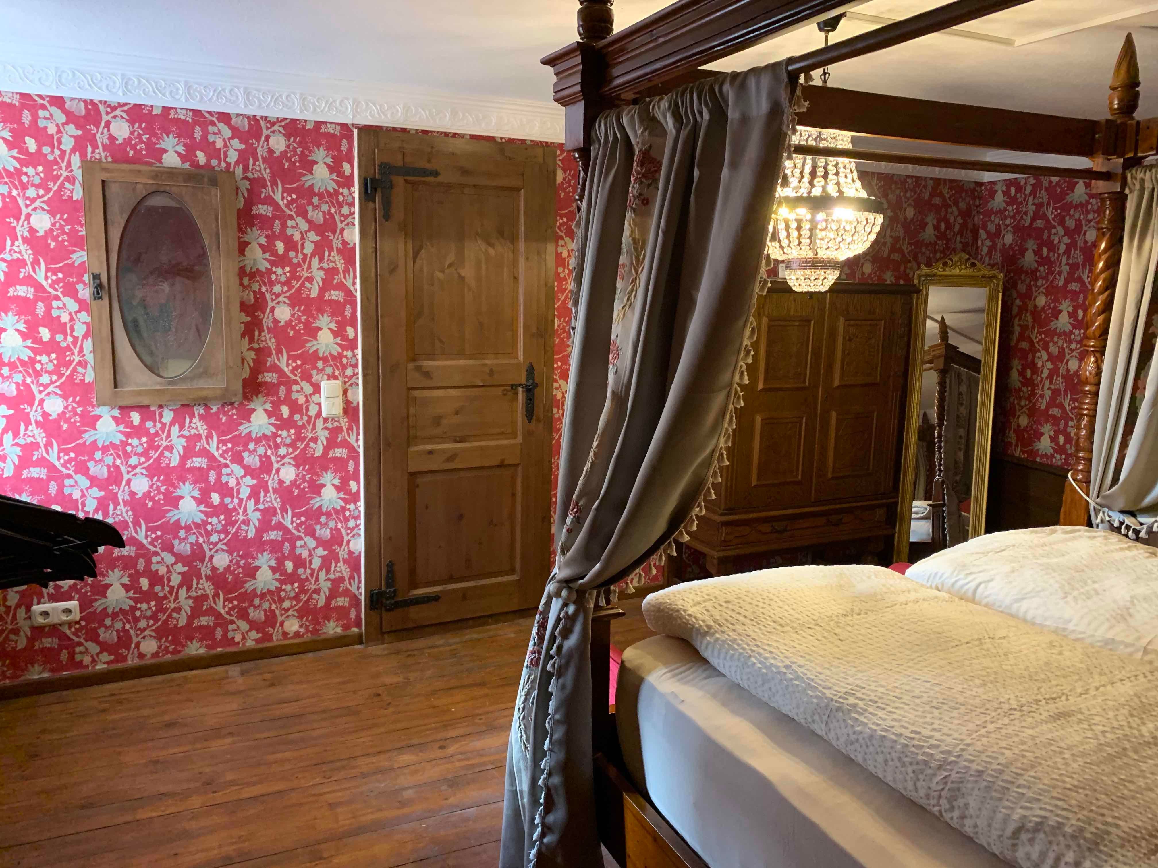 La maison Burg, la soi-disant Ritterstube, vous propose un appartement individuel pour 2 à 6 personnes ou vous avez la maison pour vous seul et un cadre très spécial. Entièrement rénovés en 2021, les murs vénérables sous les ruines du château d'Ulmen offrent le meilleur confort possible allié à une élégance princière. Ils dorment dans des lits à baldaquin et résident au-dessus des toits d'Ulmen. Parfait pour la lune de miel ! Vous avez la maison pour vous et vous pouvez encore mieux vous connaître.