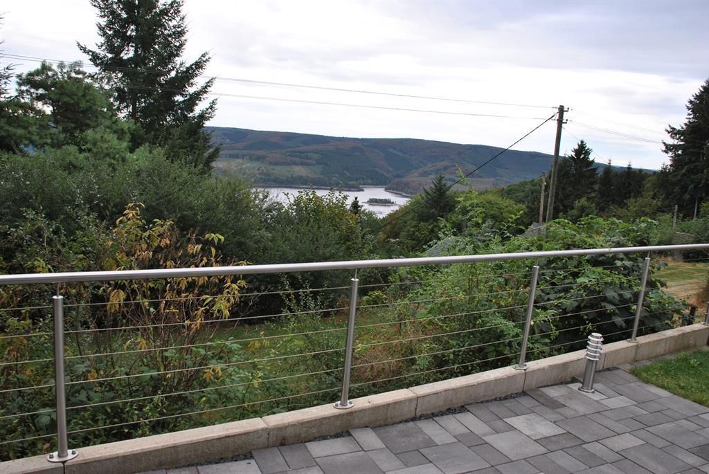 Maison individuelle sans barrière, nouvellement construite en 2012, avec vue sur le lac de la Rur et le parc national de l'Eifel. Aménagement entièrement neuf et de haute qualité. Salon/salle à manger avec coin cuisine spacieux, 2 chambres à coucher (avec lits doubles), salle de bains, WC séparé ainsi que double garage avec accès direct à la maison.
