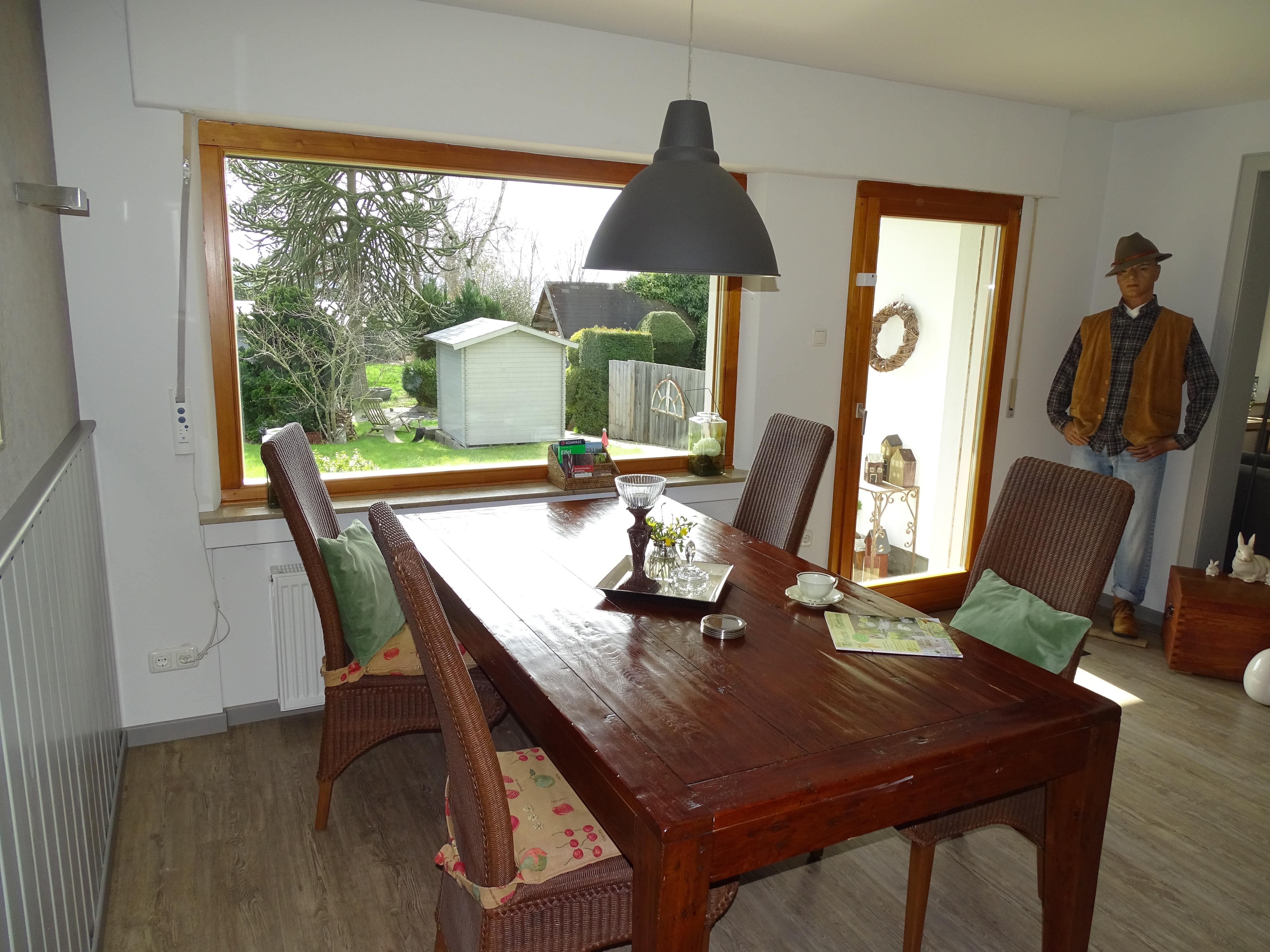 Le salon et la salle à manger sont confortables et généreusement aménagés et se trouvent du côté sud avec vue sur un grand jardin. De plus, un grand canapé-lit est disponible dans le salon.