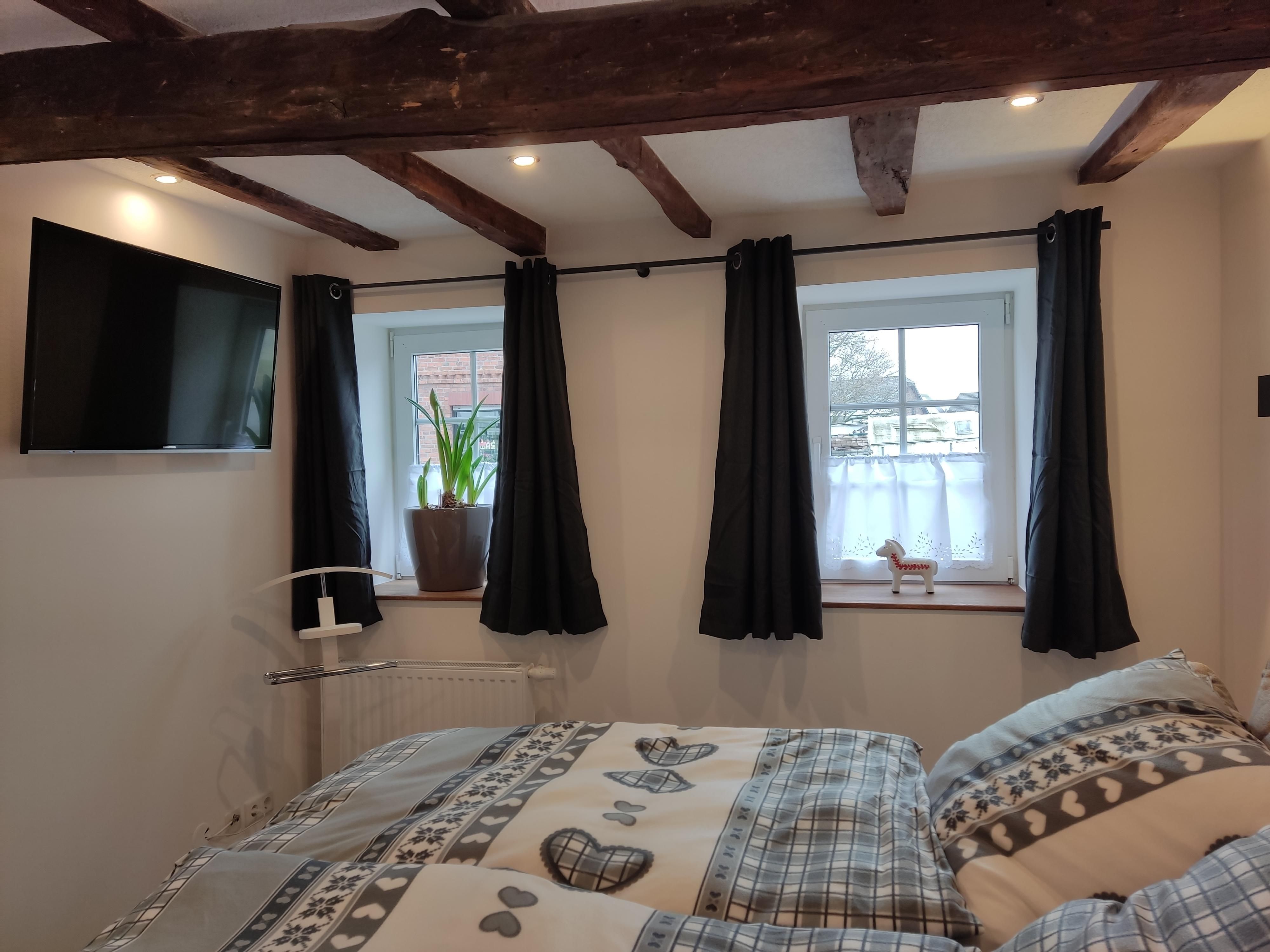 Depuis octobre 2019, la famille Eckardt offre aux vacanciers la possibilité de profiter du charme de la cour fermée et de se détendre du quotidien dans son premier appartement "Unterburg". Au total, trois unités d'habitation sont disponibles, dont l'une est utilisée par la famille Eckardt elle-même. La ferme à colombages rénovée a été construite vers 1850 et a déjà permis à de nombreuses personnes de s'y installer. La location d'un deuxième appartement de vacances "Oberburg" est prévue pour 2020. Sur demande, les poules de la maison vous fourniront des œufs pour le petit-déjeuner. Avec cordialité et engagement, la famille souhaite offrir à ses hôtes un séjour agréable.