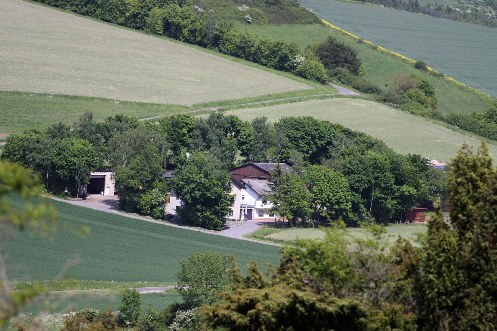 Chaque fenêtre de notre appartement offre une vue panoramique sur le paysage vallonné de l'Eifel. Profitez du calme de notre ferme au milieu des prairies et des champs verdoyants.