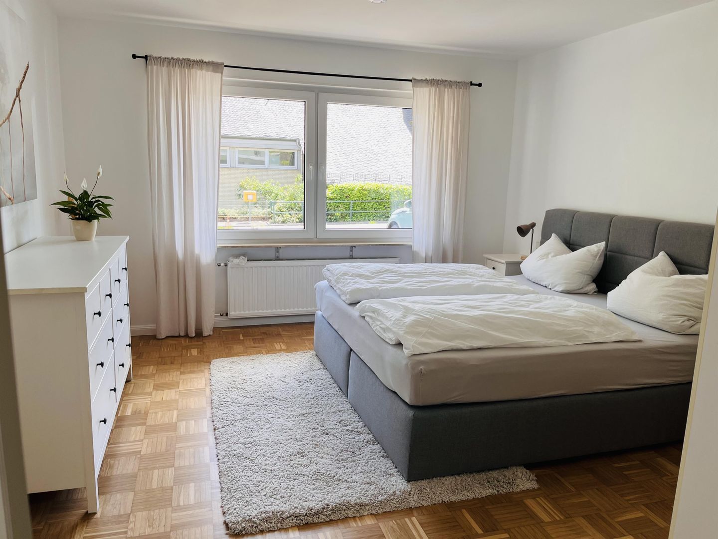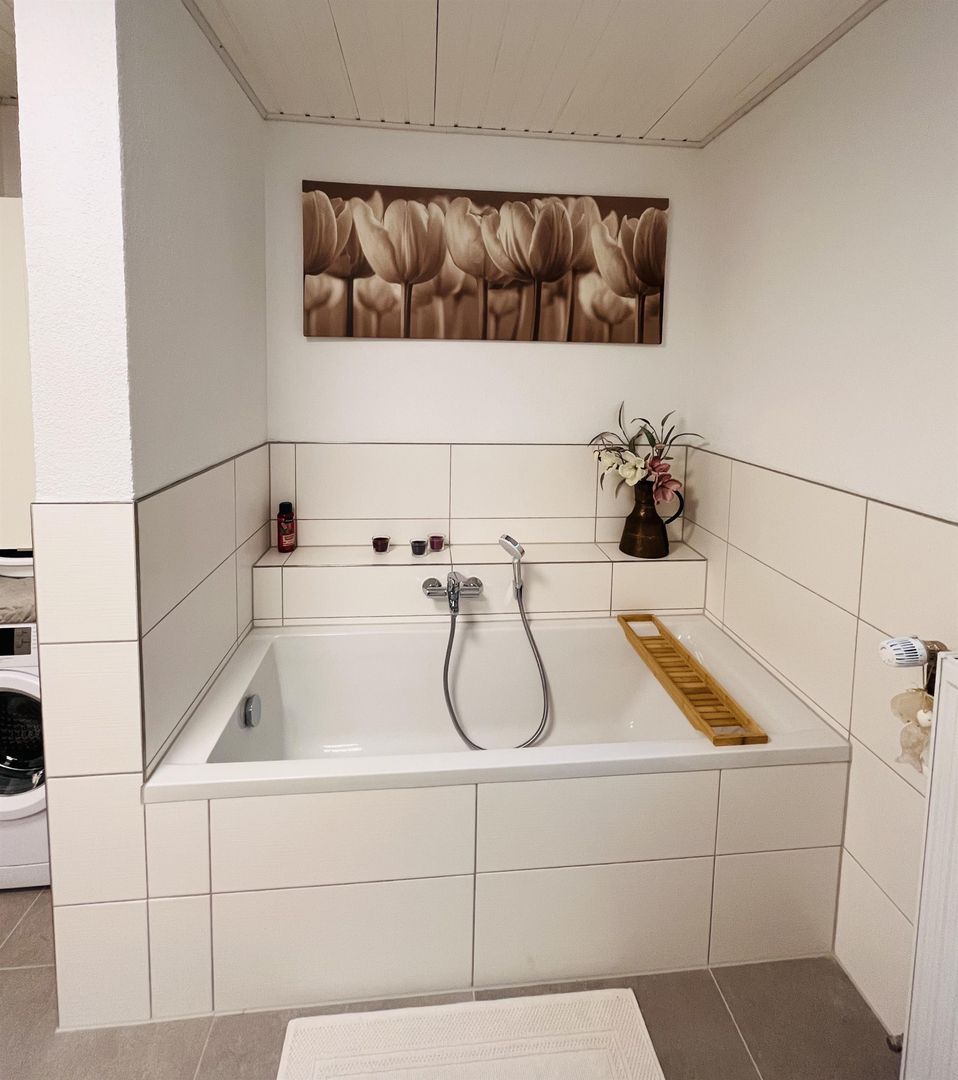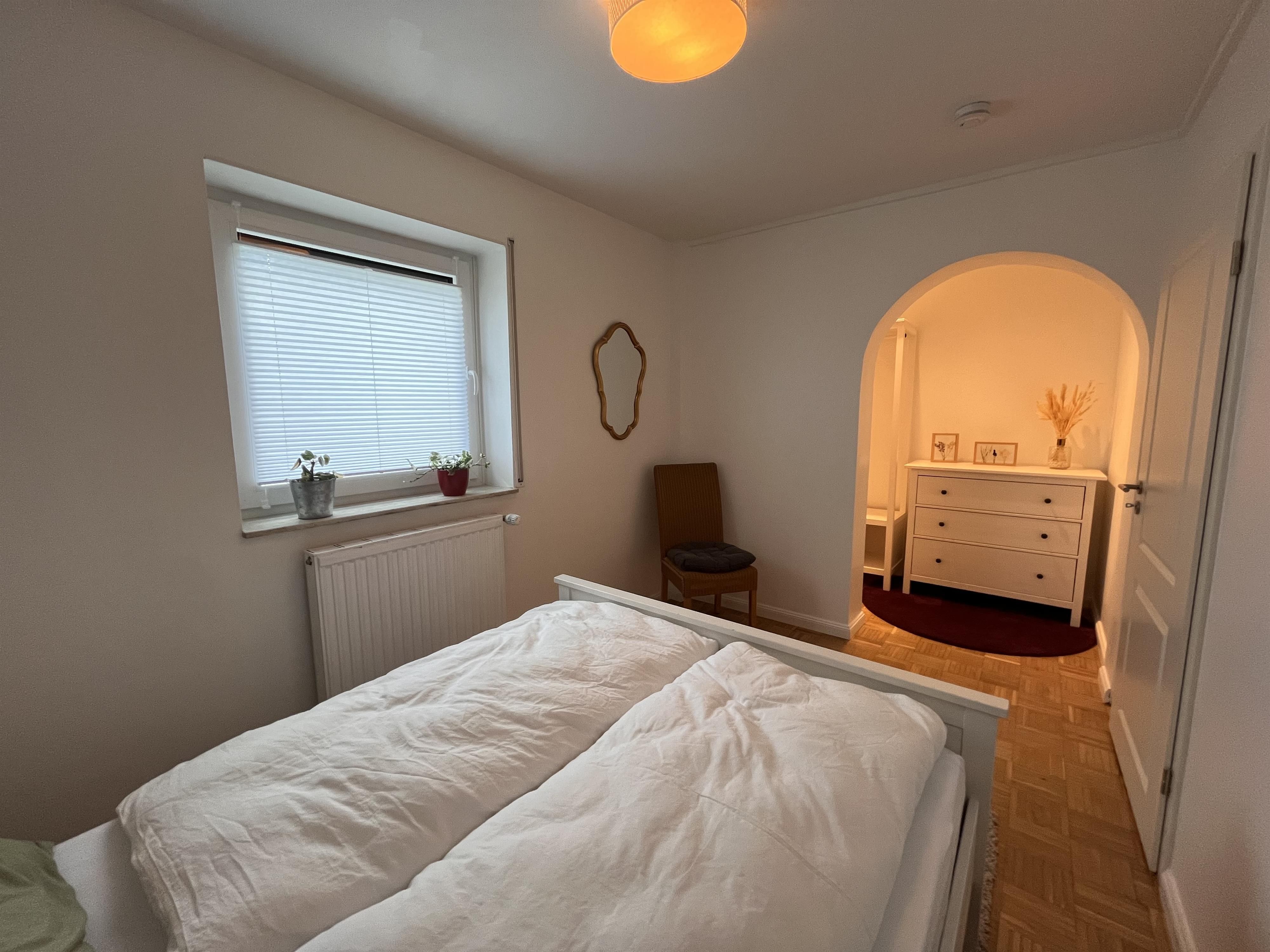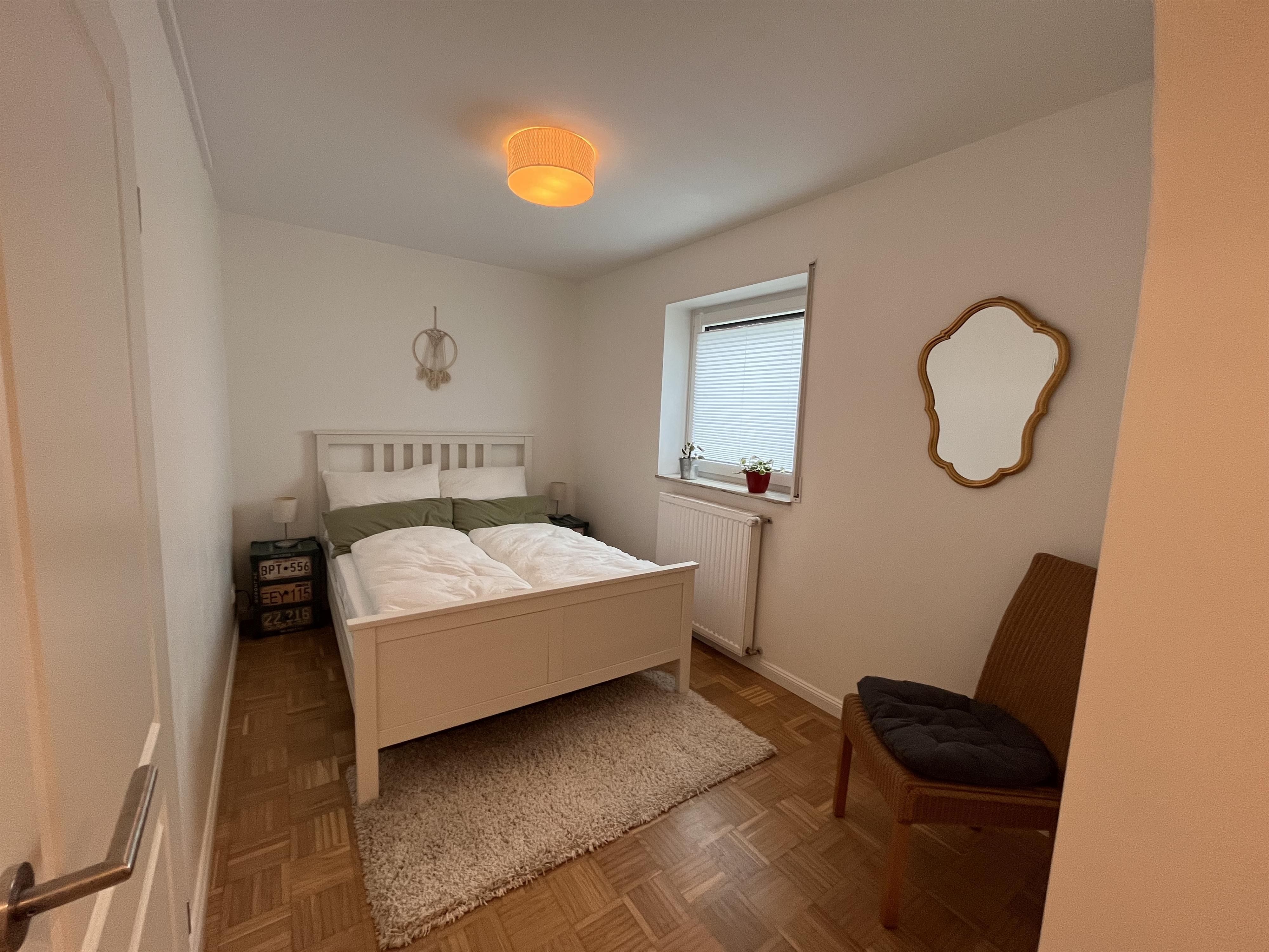 Notre appartement spacieux a été entièrement rénové en 2023/2024. Il dispose de deux chambres à coucher équipées de lits doubles confortables (1,80 m et 1,40 m). La salle de bain spacieuse est équipée d'une baignoire et d'une douche de plain-pied. Les serviettes de bain et de douche, le shampoing et le gel douche ainsi qu'un sèche-cheveux sont inclus.