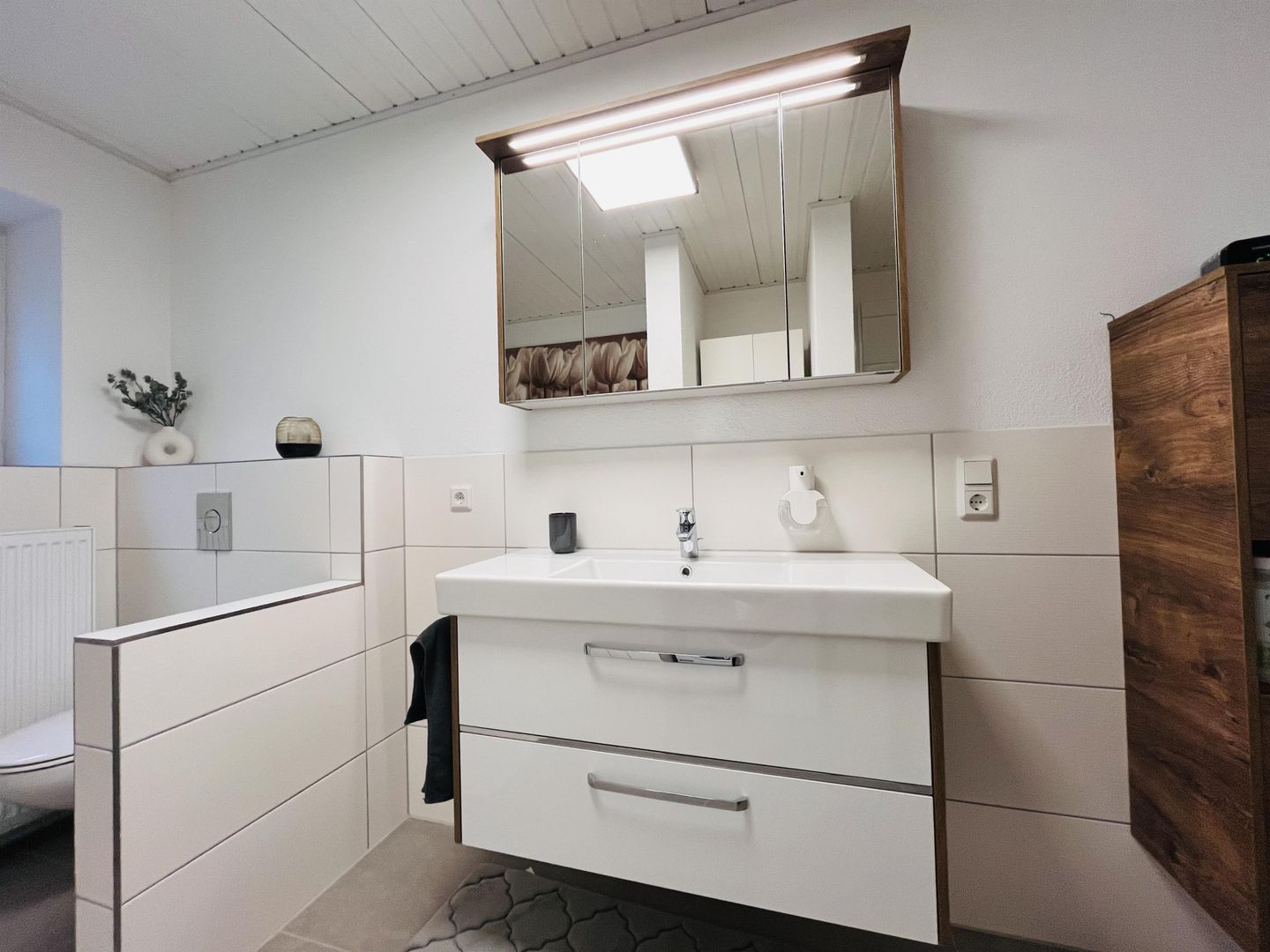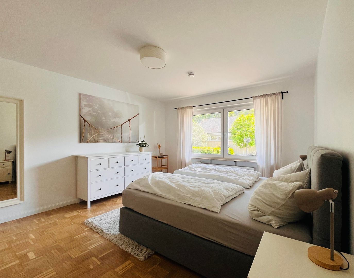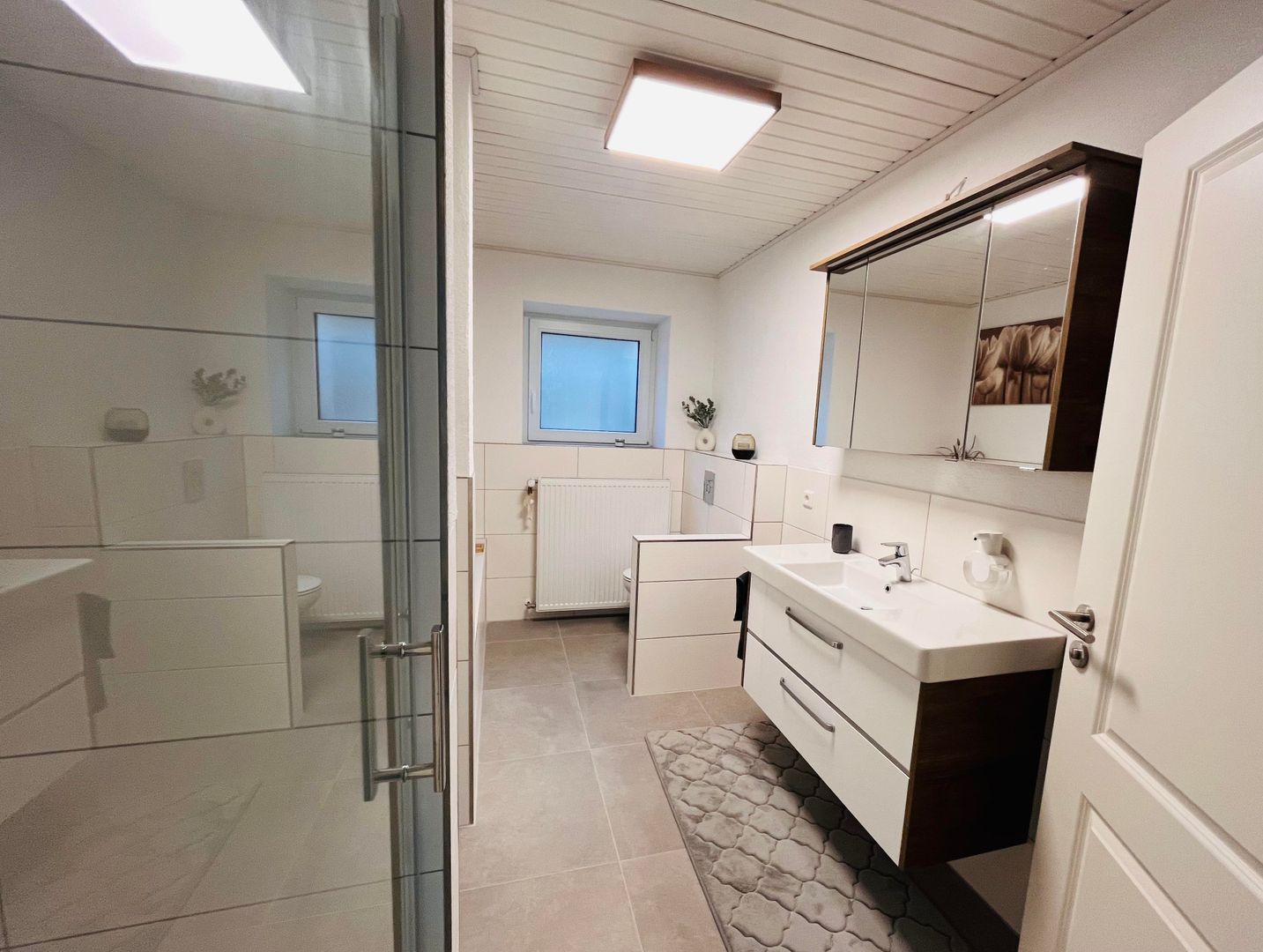 Notre appartement spacieux a été entièrement rénové en 2023/2024. Il dispose de deux chambres à coucher équipées de lits doubles confortables (1,80 m et 1,40 m). La salle de bain spacieuse est équipée d'une baignoire et d'une douche de plain-pied. Les serviettes de bain et de douche, le shampoing et le gel douche ainsi qu'un sèche-cheveux sont inclus.