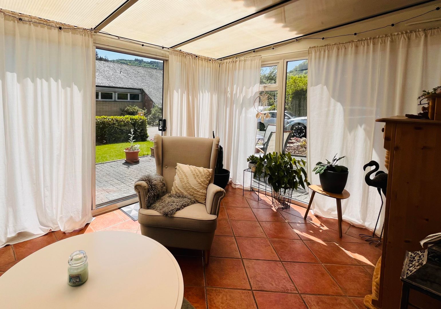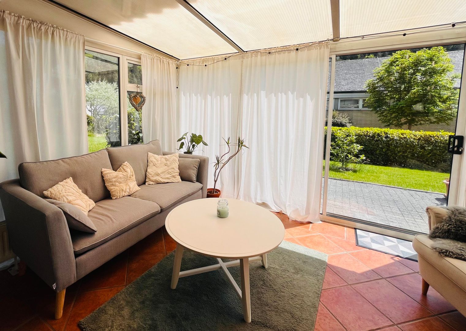 Il est possible de trais un barbecue sur la terrasse. L'un des points forts de l'appartement est le jardin d'hiver avec un petit canapé, un fauteuil et une petite table.