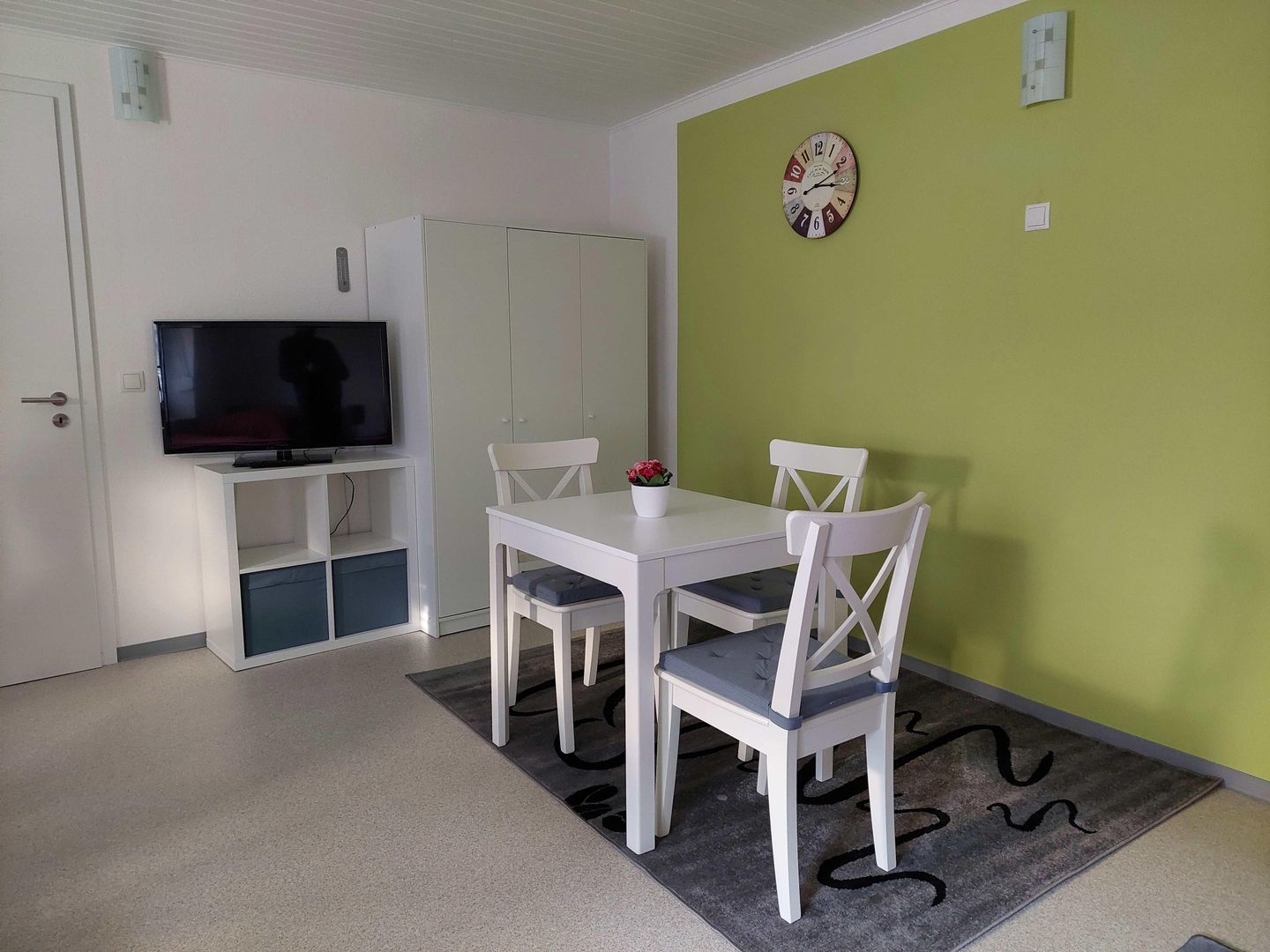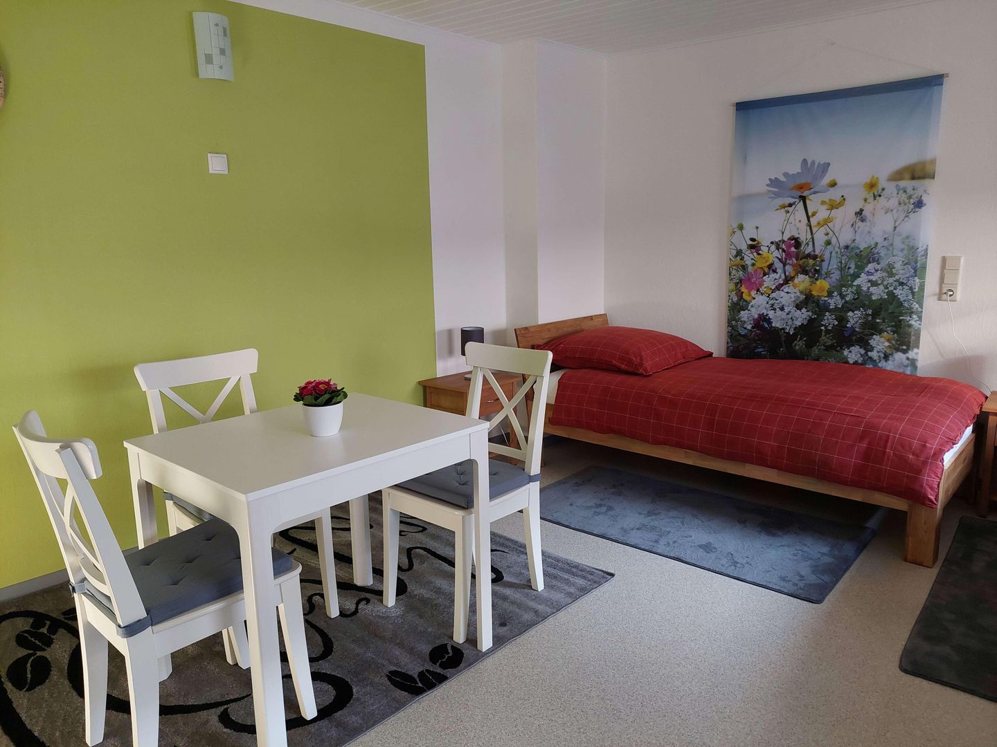Le petit appartement "Wiesenblume" offre un espace combiné de vie/chambre et un coin cuisine, pouvant accueillir jusqu'à 2 personnes.