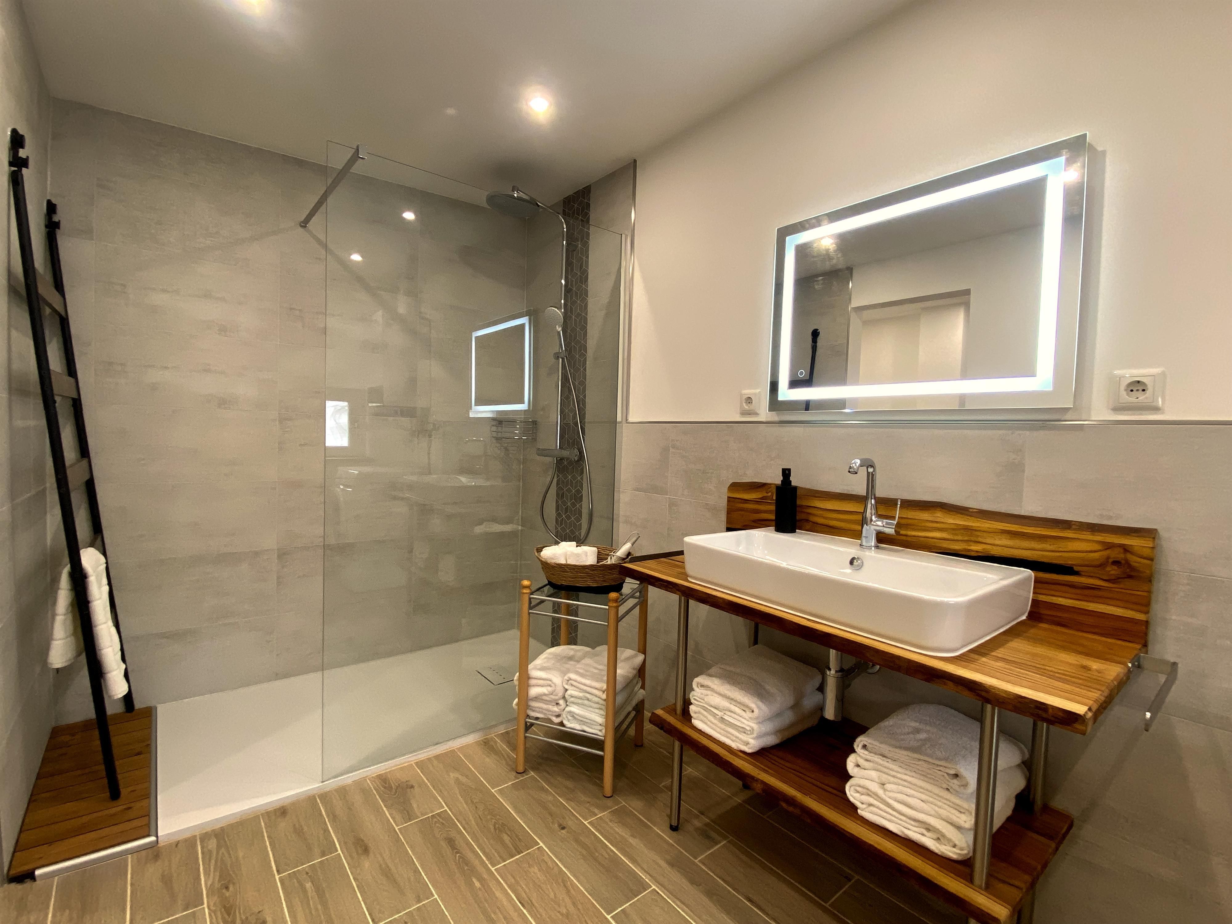 Appartement de vacances rénové avec amour dans une maison à colombages historique. Ici, l'histoire rencontre la modernité. Une grande douche, une chambre à coucher double, un balcon pour dormir, un salon avec un canapé-lit et un coin cuisine avec un buffet et une machine à café vous attendent.