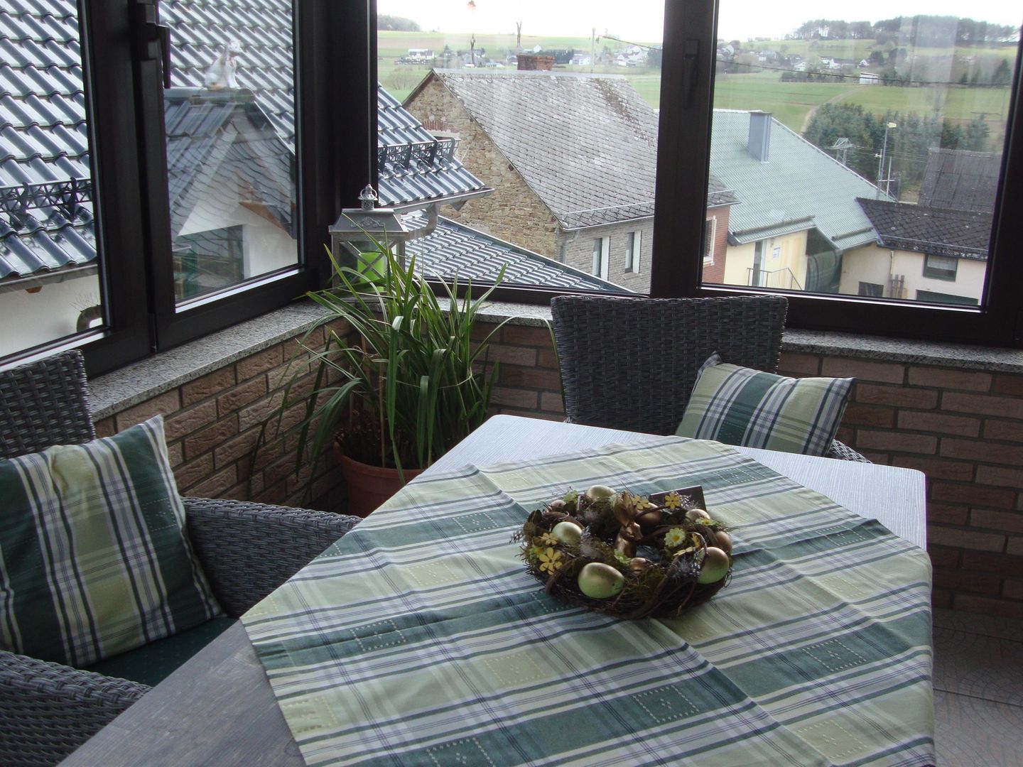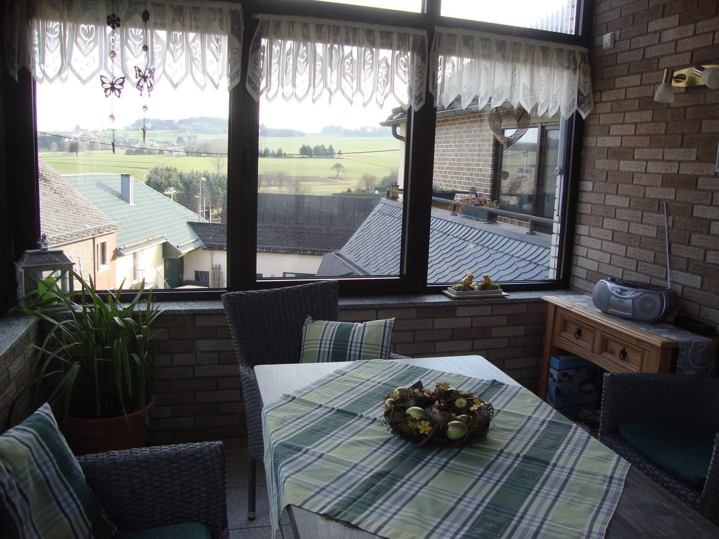Depuis le jardin d'hiver confortablement aménagé, vous pouvez profiter de la vue magnifique sur notre paysage de l'Eifel - vallée de l'Elzbach, Hochkelberg -. Ici, on peut aussi s'attarder lorsque le temps n'est pas du côté de nos hôtes.