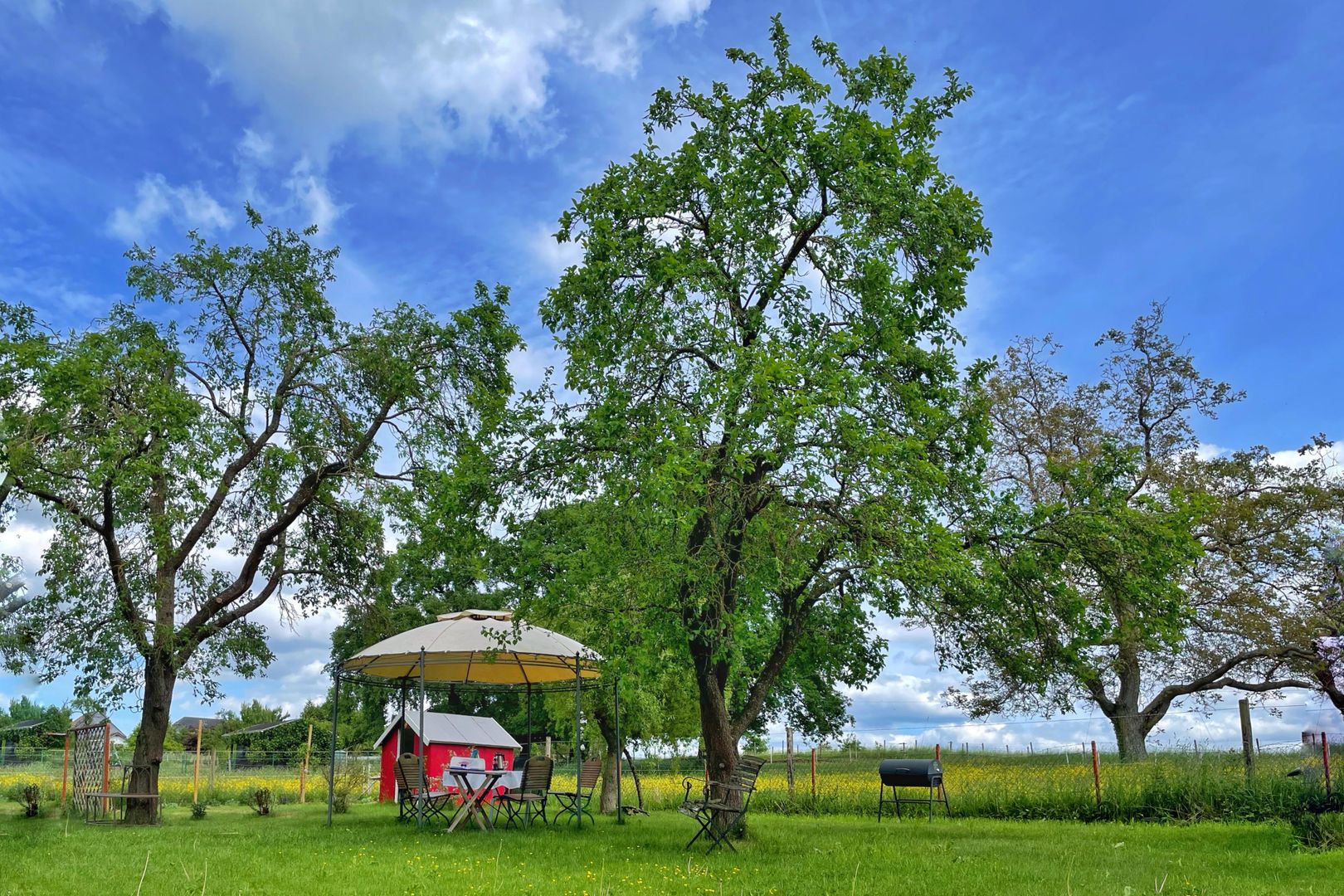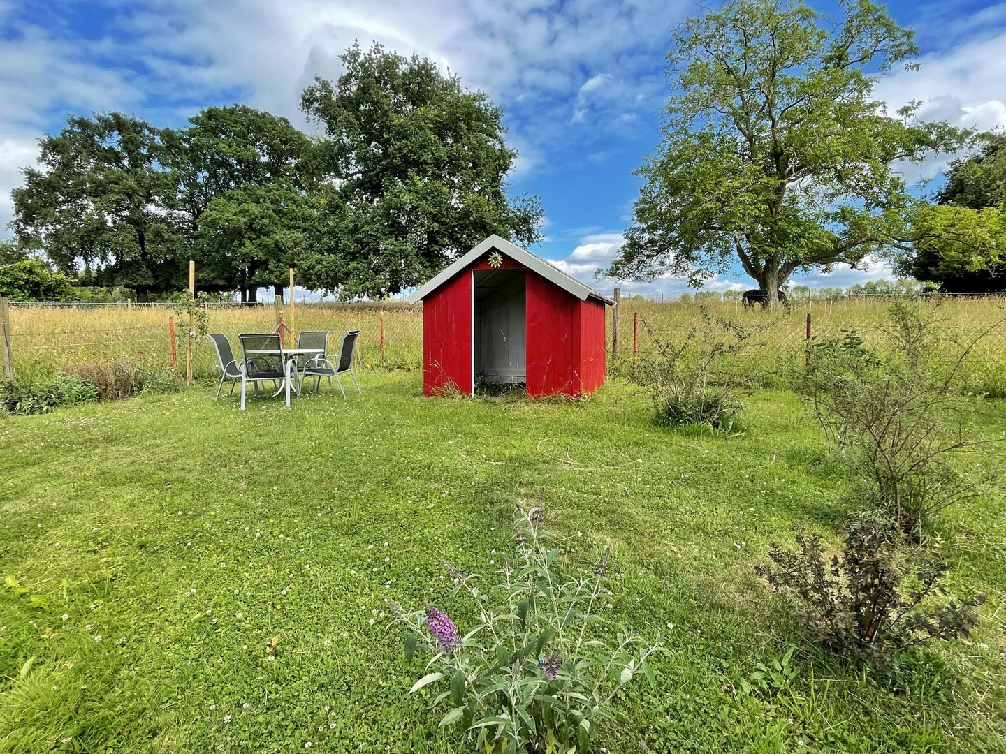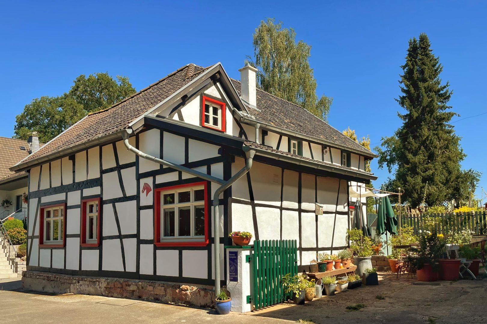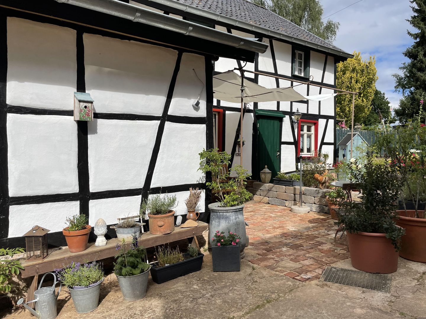 Vous habitez ici dans l'ancien « magasin de tante Emma », dans un bâtiment séparé d'une ferme classée monument historique, le bâtiment le plus ancien datant de 1640 environ. Les deux maisons à colombages ont été restaurées par nos soins avec beaucoup d'amour du détail et uniquement avec des matériaux de construction naturels comme le bois et l'argile, de manière professionnelle, au cours des trois dernières années. Si vous cherchez le calme et la détente, vous êtes au bon endroit. Dans le jardin de 1000 mètres carrés, des espaces ont été spécialement aménagés pour nos hôtes, avec beaucoup de place et une vue sur la verdure.