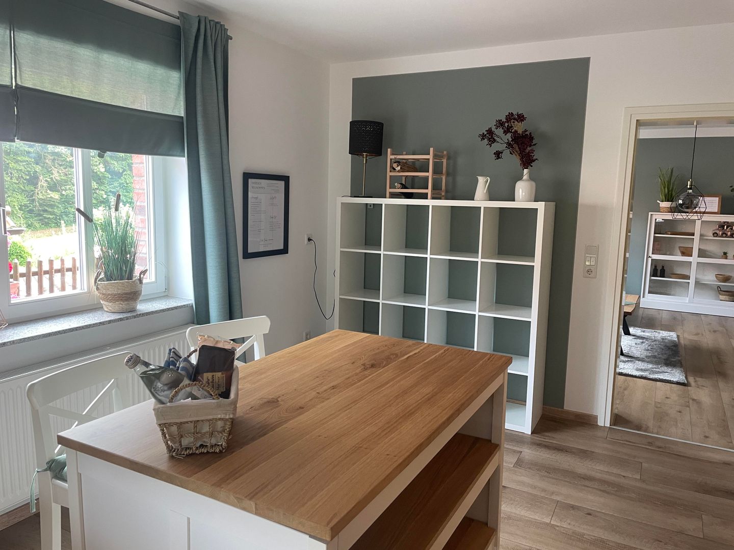 L'appartement récemment aménagé dispose d'une grande cuisine équipée avec réfrigérateur, cuisinière électrique, micro-ondes, lave-vaisselle, bouilloire et machine à café.