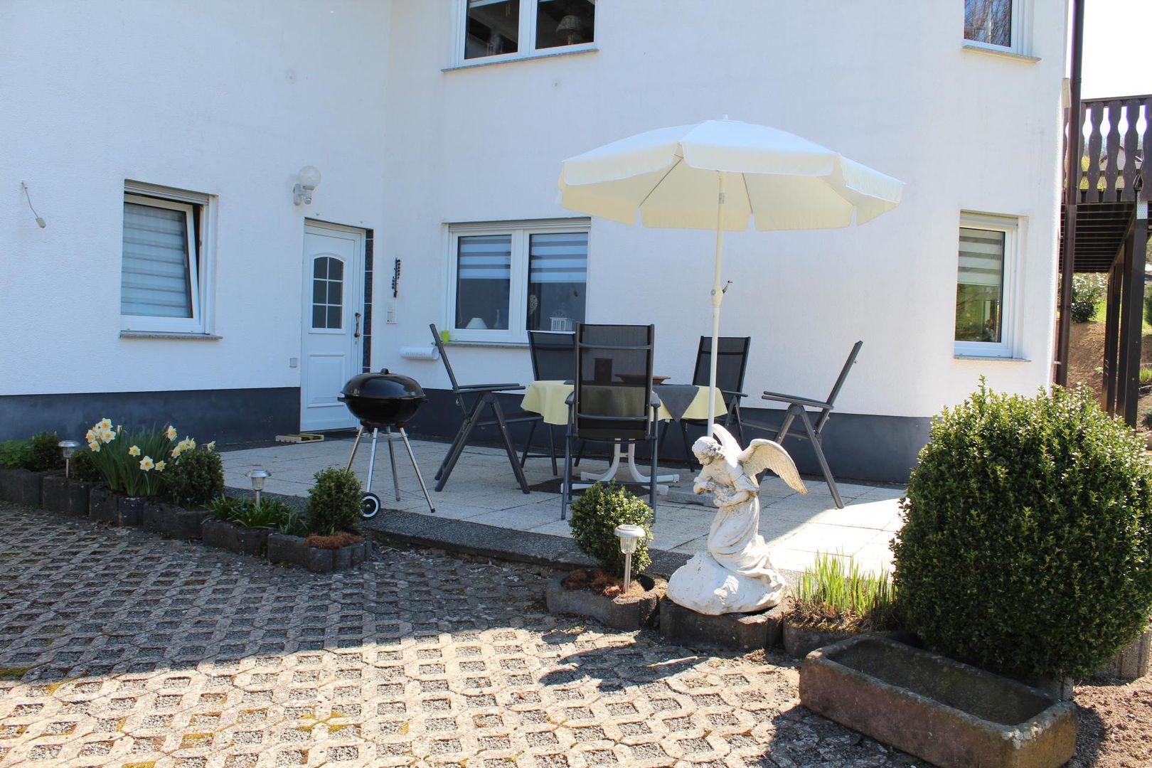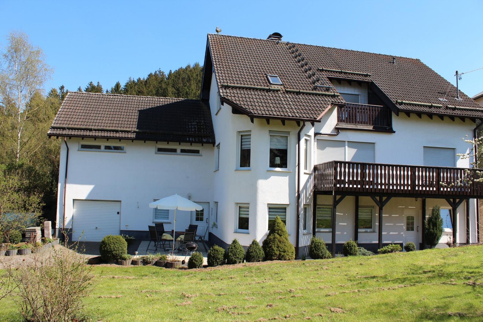 À l'extérieur, une grande terrasse meublée avec vue sur l'Eifelsteig et le jardin adjacent avec pelouse pour prendre le soleil vous invite à faire un barbecue, à vous détendre, à prendre un délicieux petit déjeuner ou un verre de vin le soir. Vous pouvez utiliser gratuitement le parking situé directement devant la maison. Sur demande, un garage pour les vélos ou les motos peut être mis à disposition moyennant un supplément. À partir d'avril 2020, 2 lits supplémentaires (soit un total de 7 lits) peuvent être fournis sur demande, en combinaison avec une salle de bain supplémentaire.