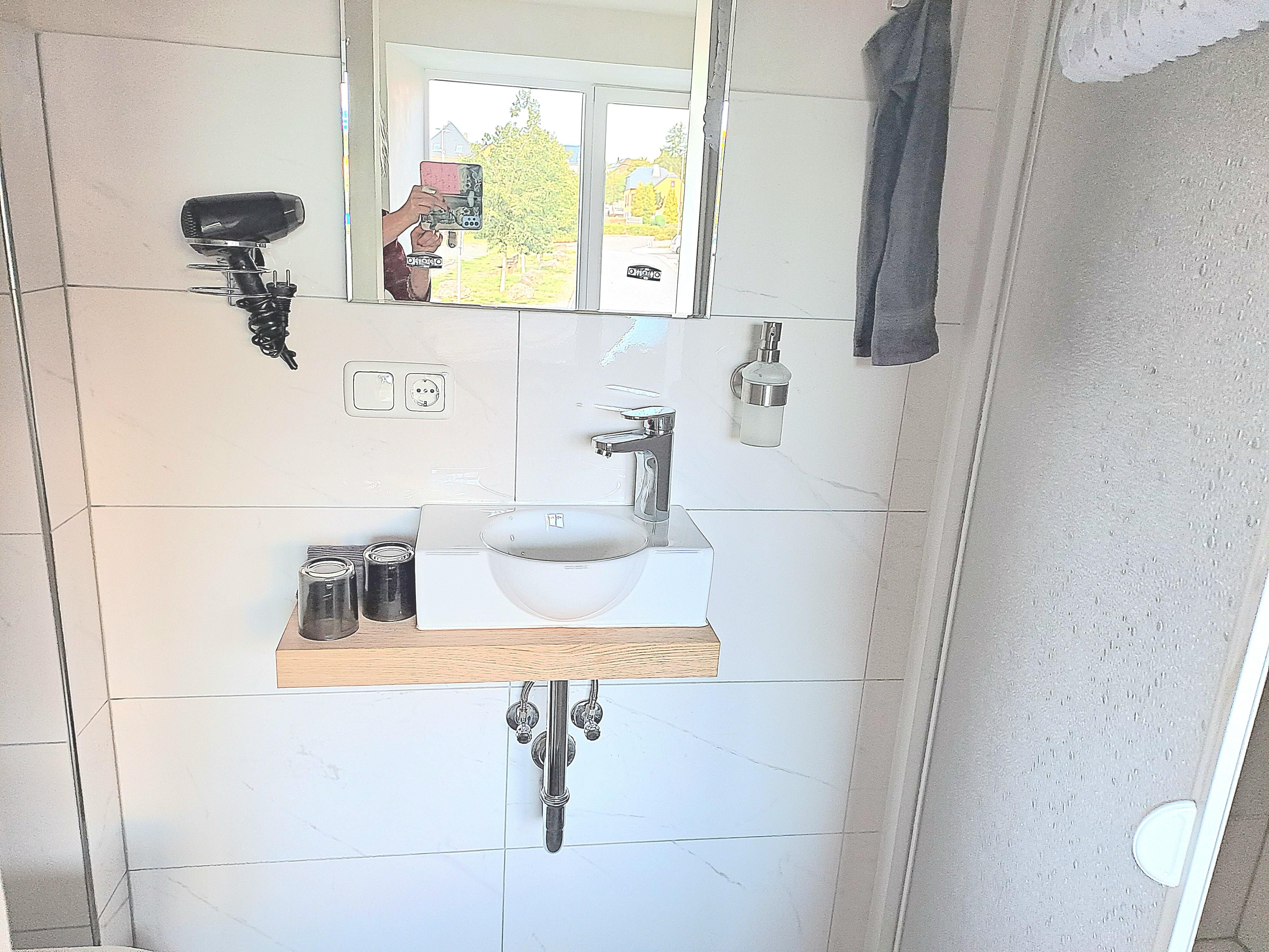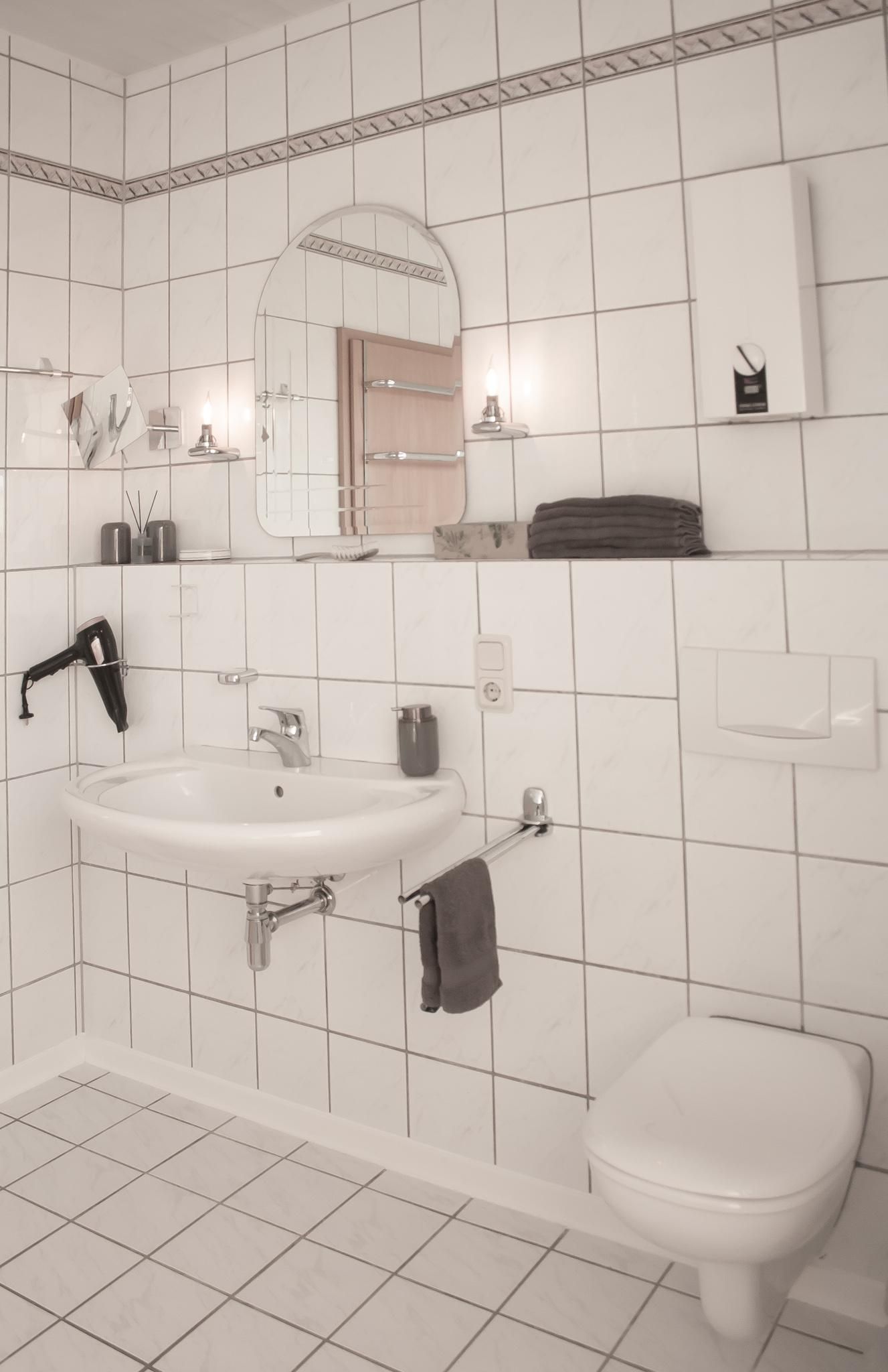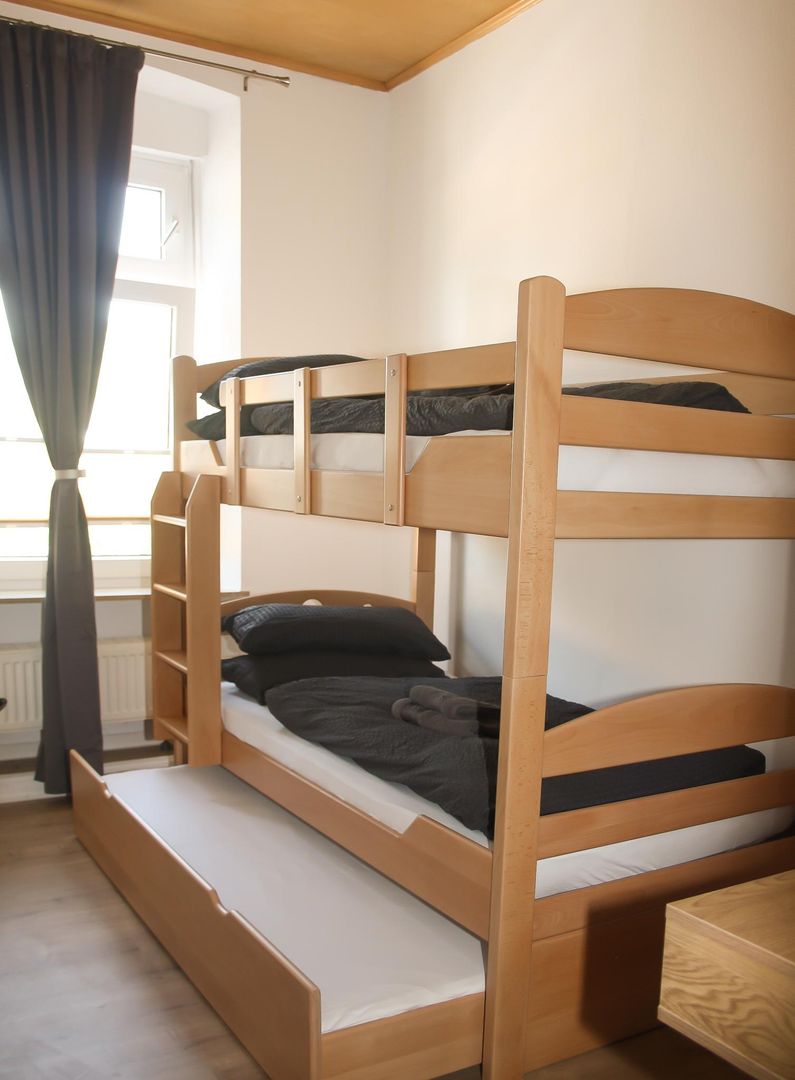 Il a une superficie de 74 m² et dispose de 2 chambres, 1 salon, 1 cuisine, 1 salle de bain. La chambre à coucher la plus spacieuse dispose d'un lit double et d'une armoire à 3 portes ainsi que d'un porte-bagages. Ici, dans la chambre à coucher, il y a aussi la possibilité d'installer un petit lit de voyage. La petite chambre est équipée d'un lit superposé pour adultes et d'une table et d'une chaise de bureau. Les deux chambres sont accessibles depuis le couloir. La salle de séjour, avec son grand canapé extensible, vous invite à vous allonger et à terminer la soirée en écoutant de la bonne musique ou en regardant la télévision. Si vous regardez par les fenêtres du salon, vous aurez une vue imprenable sur le marché aux bestiaux qui se trouve juste à côté et qui est très animé tous les jeudis (jour de marché). De plus, de l'autre côté de la rue se trouve l'Eifel- Alm, un restaurant d'aventure. Les trois chambres sont en outre équipées de volets roulants extérieurs qui garantissent un excellent obscurcissement des chambres. La cuisine spacieuse offre une vue fantastique sur l'ancien mur de la ville datant du 13ème siècle ainsi qu'une vue sur la petite vallée de Bolsdorf, avec son sentier pieds nus de 1,5 km de long et ses 22 stations ainsi que de nombreux sentiers de randonnée. De plus, en regardant par la fenêtre de la cuisine, on peut admirer des couchers de soleil de rêve. La grande table de la cuisine peut accueillir 6 personnes + une chaise d'enfant, ce qui permet à toute la famille de s'asseoir confortablement pour jouer à des jeux de société après le dîner. La salle de bain est équipée d'une baignoire, de toilettes, d'un lavabo, d'un sèche-cheveux et d'un pot pour enfants. Un matelas à langer est également disponible, ainsi qu'une baignoire pour bébé et de la vaisselle pour enfants en double quantité. Une machine à laver et un sèche-linge se trouvent dans la petite buanderie de l'appartement d'hôtes et peuvent être utilisés gratuitement. La taxe touristique de 1,50€ par personne est également incluse, ainsi qu'une bouteille d'eau minérale par personne et une bouteille de vin à l'arrivée et les frais d'énergie. Le linge de lit et une grande + une petite serviette par personne (à utiliser pendant le séjour) sont facturés 15,- € par personne.