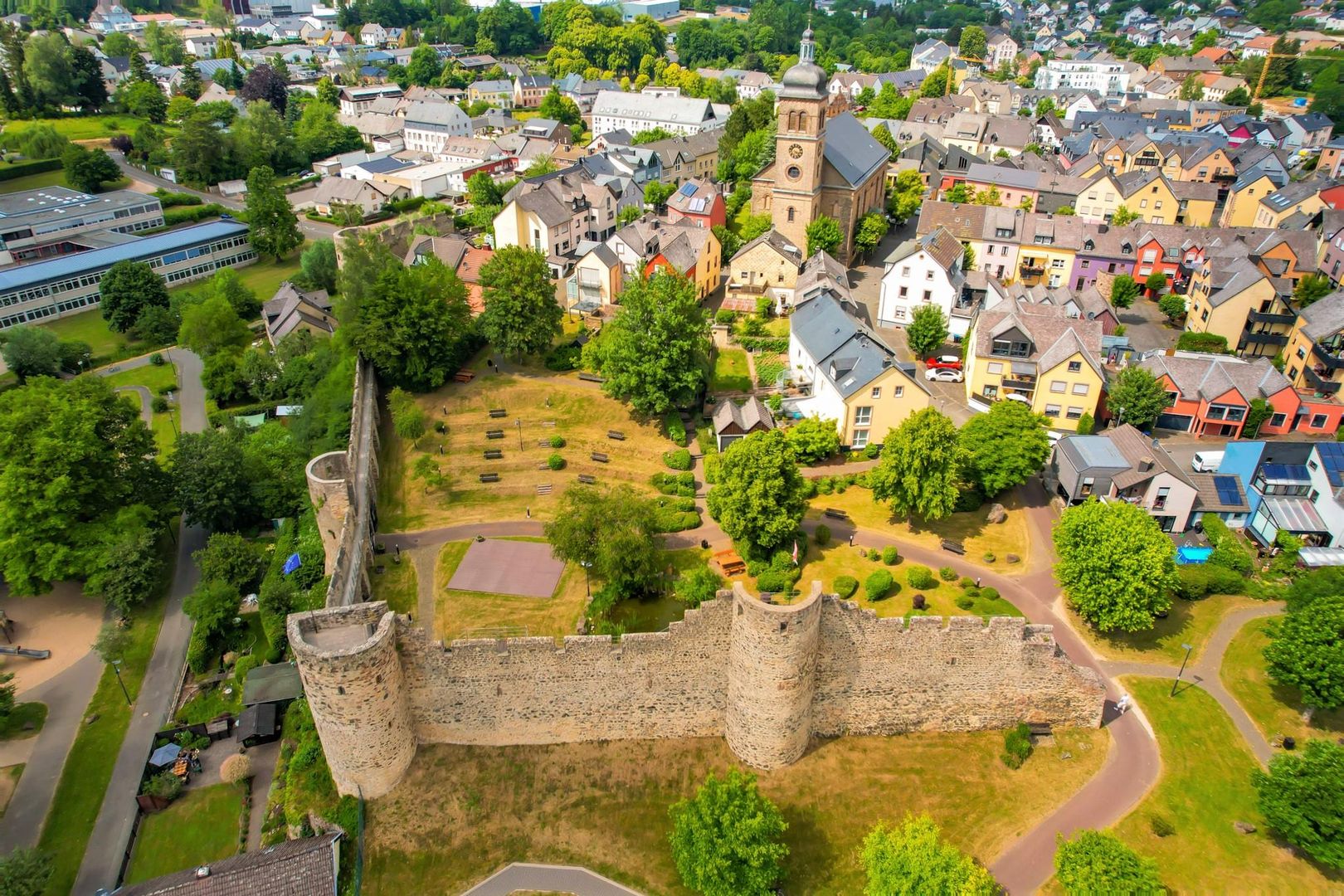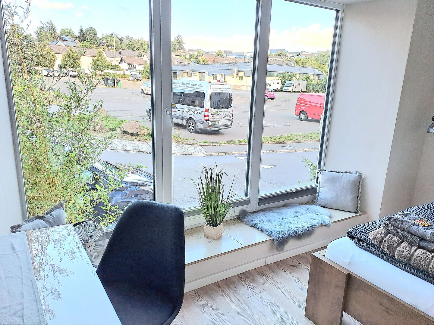 L'accès à l'appartement d'amis se fait par la cour (accès pompiers). Une place de garage est à votre disposition. Il y a également une petite place pour s'asseoir dans la cour. En descendant les marches adjacentes, vous arrivez immédiatement à l'école primaire située à gauche. Dans l'école primaire se trouve une petite piscine couverte qui est ouverte au public l'après-midi. Alors : préparez vos "maillots de bain". Pour connaître les heures d'ouverture exactes, appelez le : Tél. 06591 4538. D'autres piscines couvertes se trouvent à Gerolstein (env. 9 km) et Jünkerath (env. 13 km).