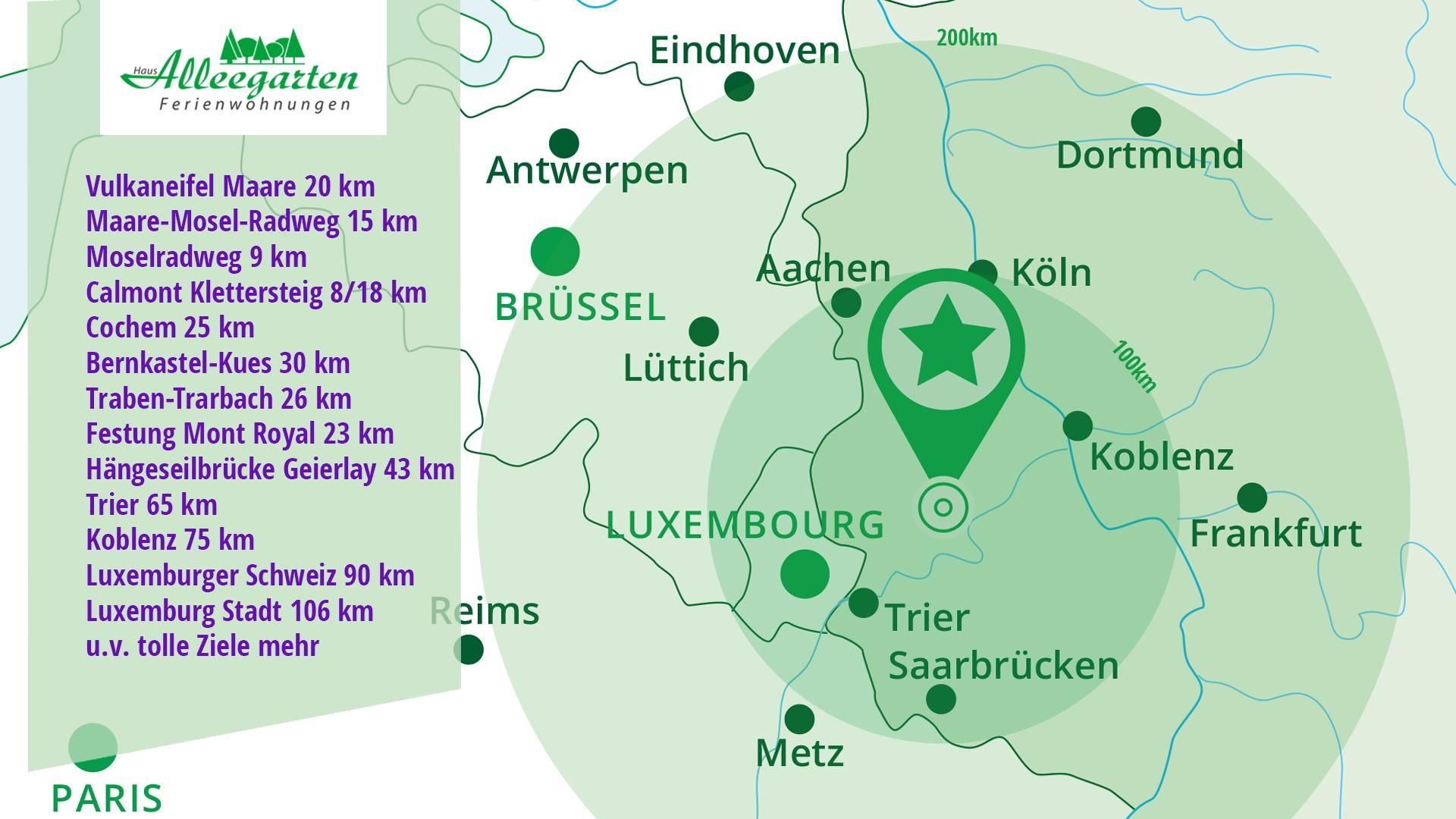 se trouve votre logement de vacances dans la maison Allegarten. À Bad Bertrich, dans le GesundLand Vulkaneifel, le pays des thermes et des maars.