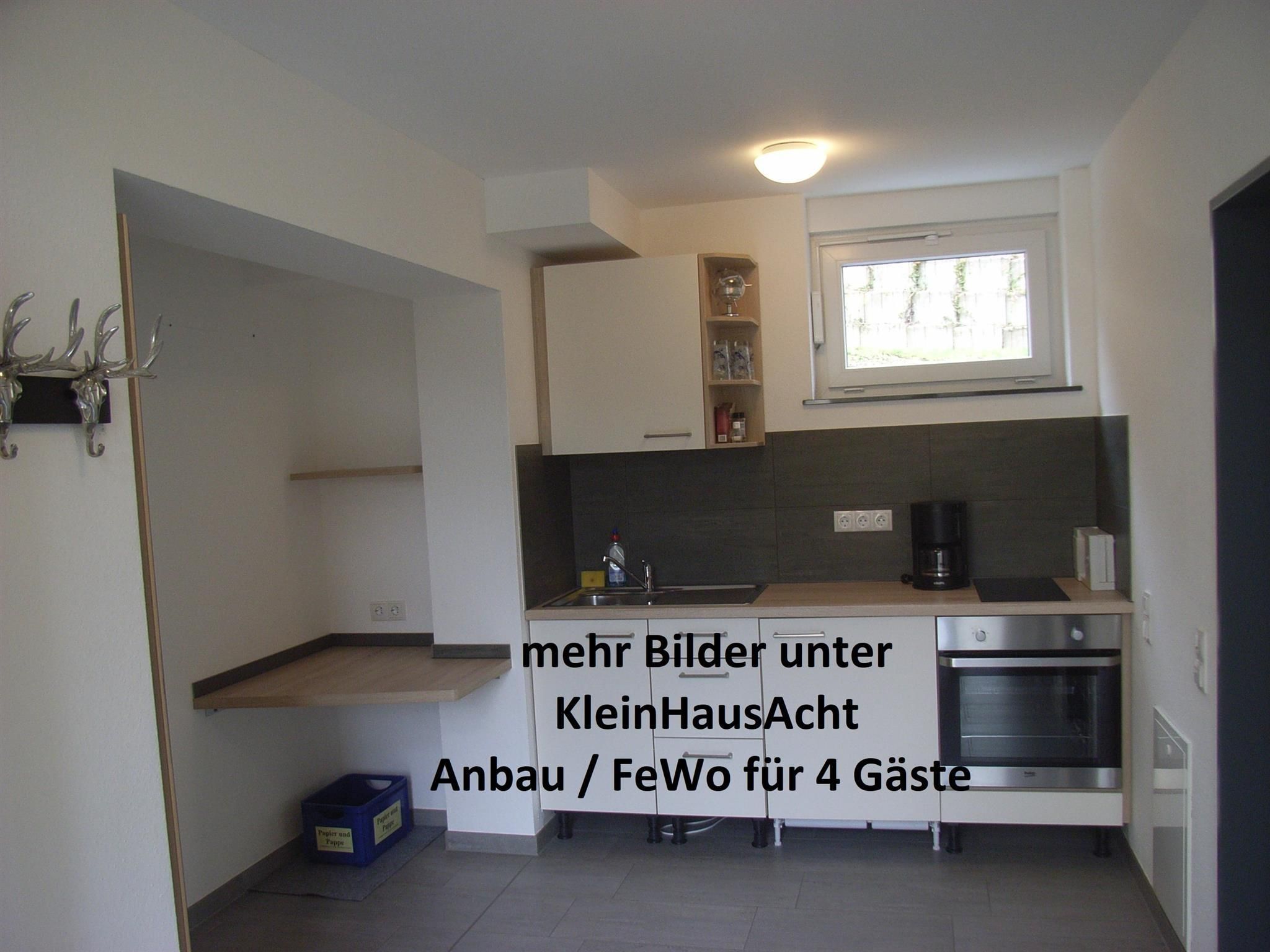Il est possible de louer la KleinHausAcht, accessible aux personnes à mobilité réduite, de manière intégrative. Cette annexe, située au niveau des salles de séjour de la HausAcht, offre 2 chambres supplémentaires pour 4 hôtes, une entrée avec un coin cuisine et une grande salle de bain équipée pour les personnes handicapées. Jusqu'à 3 personnes en fauteuil roulant peuvent s'y installer.
