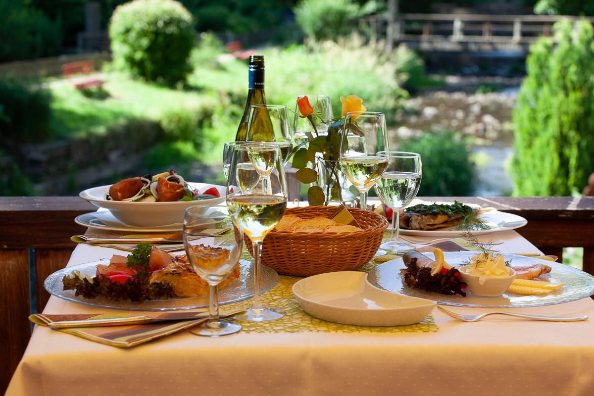 Régalez-vous avec des délices de la cuisine régionale fraîche, où une attention particulière est accordée à l'utilisation de produits locaux. Les truites pour nos différents plats sont pêchées chaque matin pour vous dans le Mühlbach, et nous préparons nos gâteaux selon d'anciennes recettes familiales depuis 40 ans.