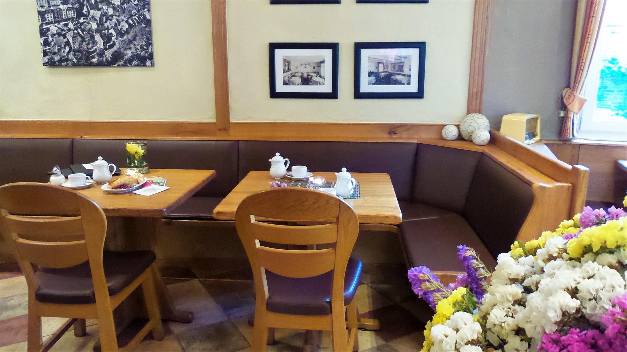 "Nous sommes à Monschau, rejoignez-nous ...", une cuisine typique de l'Eifel, alliée à une légèreté rurale vous attend en toute saison, que ce soit au printemps aux temps de narcisse, en été avec le festival classique, en automne avec nos spécialités saisonnières ou en hiver avec le marché de Noël. Nous nous réjouissons de votre visite - 120 terrasses ensoleillées et 55 places au restaurant vous invitent à la flânerie et à la détente.