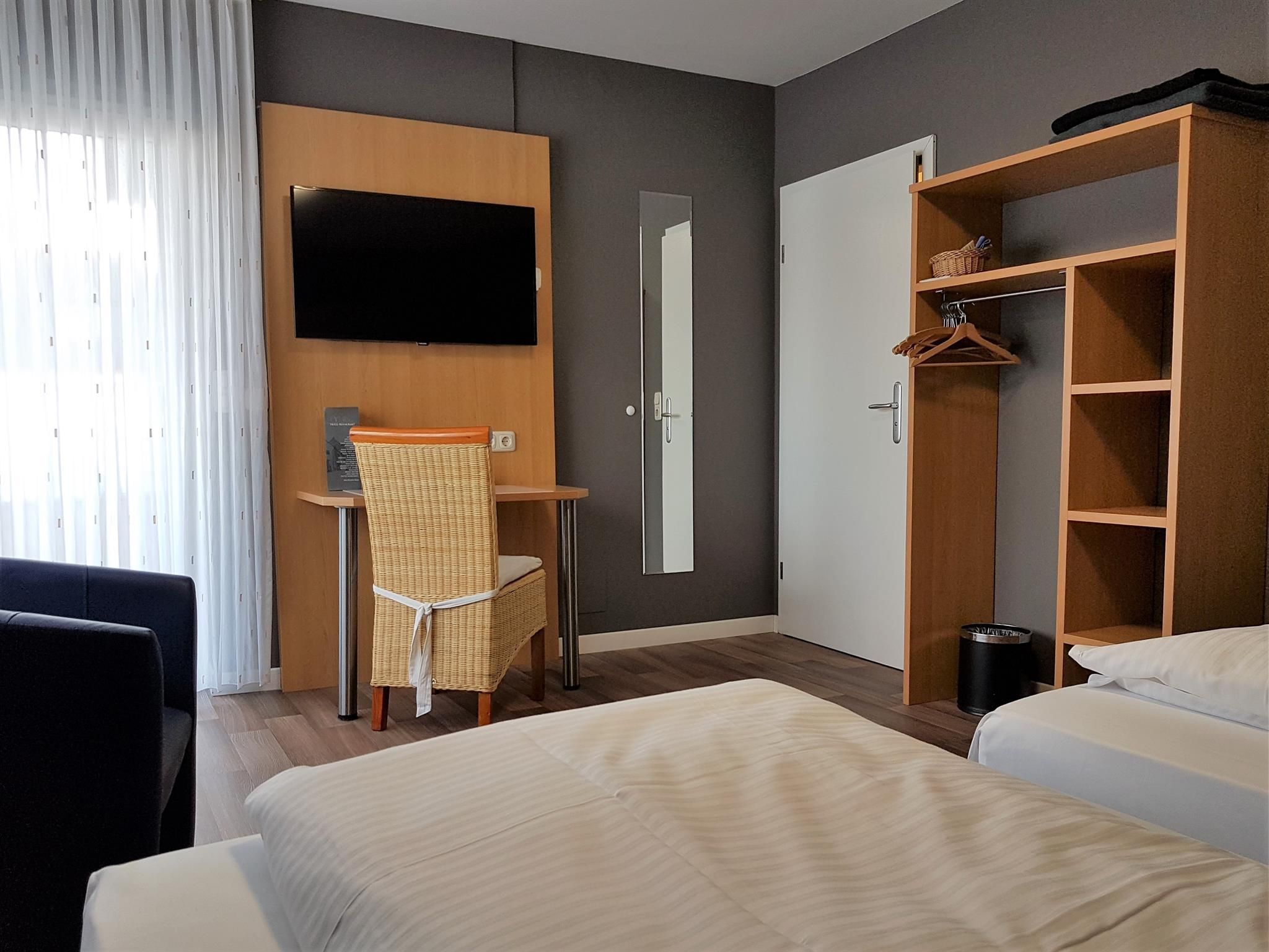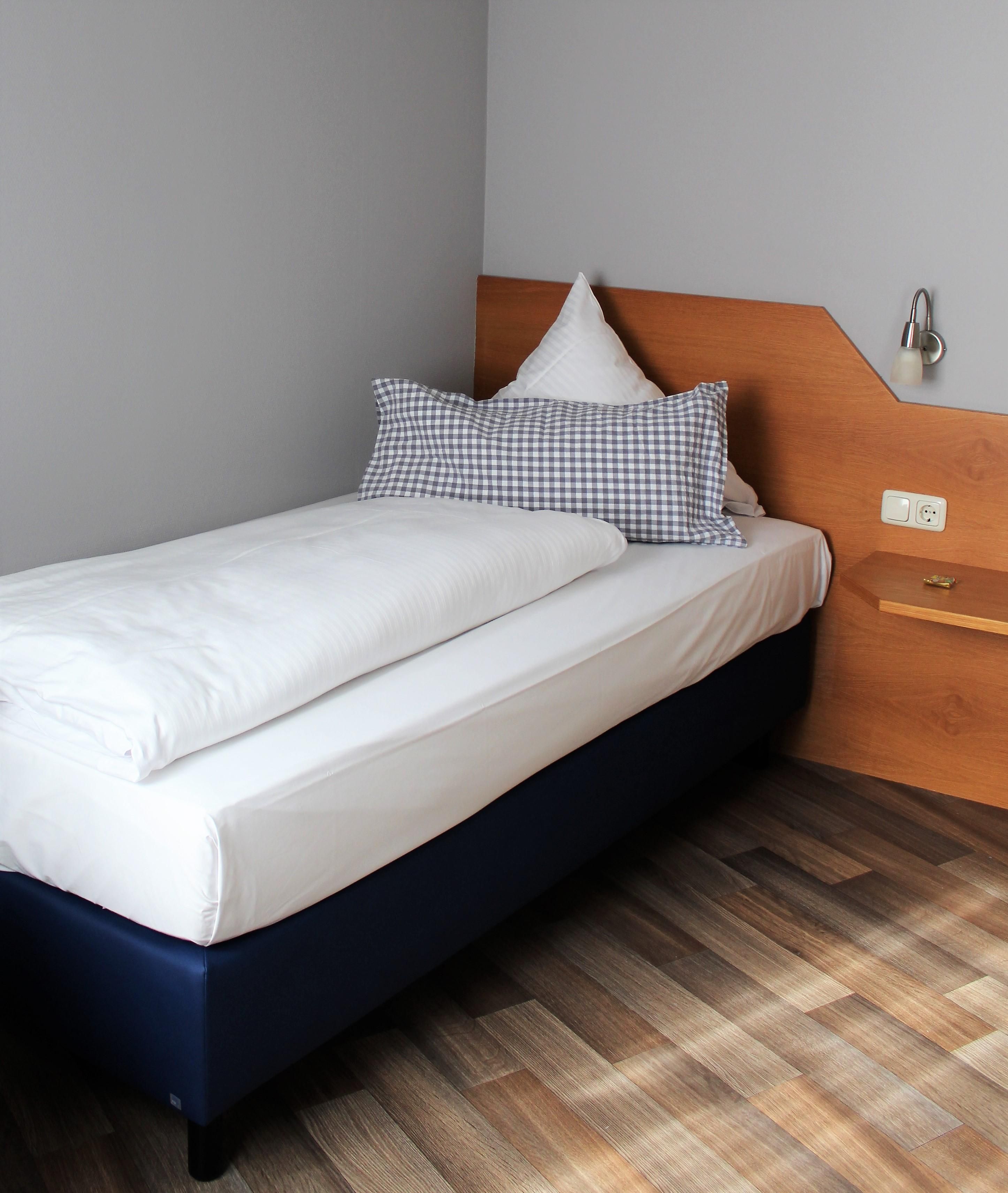 Les chambres sont équipées d'une douche/WC, d'un sèche-cheveux, d'une télévision, d'une radio, d'un réveil et d'un balcon. Au total, 6 chambres individuelles et 22 chambres doubles ou twin (avec lits séparés) sont à votre disposition. Il est possible d'ajouter un lit dans une chambre à 3 ou 4 lits. Les chambres doubles standard se trouvent principalement dans la maison d'hôtes historique "alte Vogtei Anno 1770", située directement de l'autre côté de la rue ou dans l'un des autres bâtiments voisins.