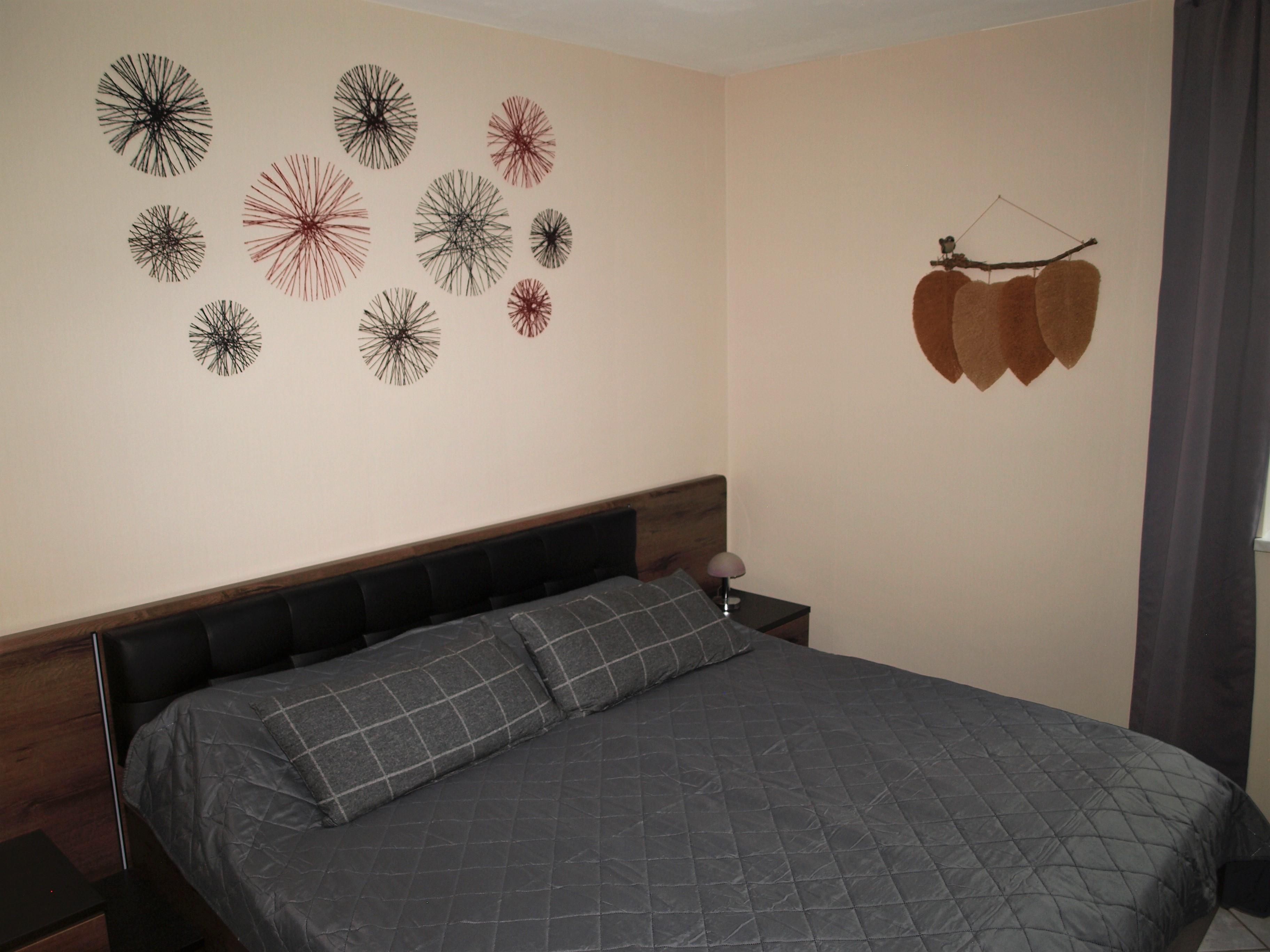 Les deux chambres à coucher sont orientées nord-ouest et nord-est. On y trouve respectivement un lit double et un lit simple avec de nouveaux sommiers à lattes et des matelas en mousse froide (dimensions : 2,00 x 1,80 m et 2,00 x 1,00m) ainsi que des armoires et des commodes.