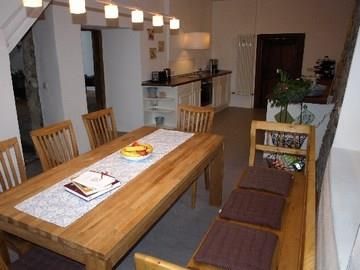 Vous aimez le romantisme, le calme, la nature et l'air frais ? Alors vous êtes à la bonne adresse dans la maison Junker, classée monument historique. Celle-ci vous servira de point de départ optimal pour vos vacances et sera la base de journées reposantes. En 2009, la Junkerhaus a retrouvé une nouvelle jeunesse et a été entièrement réaménagée au niveau 4 étoiles. La maison Junker offre 6 chambres et 2 salles de bain. L'équipement : - 2 chambres d'enfants séparées - un canapé-lit pour 2 personnes supplémentaires dans chacun des deux salons - TV LCD-SAT 32 pouces, DVD, chaîne hi-fi - WLAN, téléphone, appels gratuits sur le réseau fixe allemand - équipement de linge pour le lit, la salle de bain, la cuisine, sèche-cheveux - Sur demande, un lit de voyage supplémentaire pour les enfants Au rez-de-chaussée se trouve un hall d'accueil confortable avec une table à manger ("salle des chevaliers") ainsi qu'une grande cuisine-salle de séjour avec une autre table à manger, équipée de tout ce qui est nécessaire à une bonne cuisine, y compris un lave-vaisselle et un four à micro-ondes. lave-vaisselle et deux chaises pour enfants. Extérieur : - à l'extérieur plusieurs groupes de sièges - à l'ombre, au soleil ainsi qu'un barbecue - carport pour une voiture / motos et une place de stationnement à côté du carport.