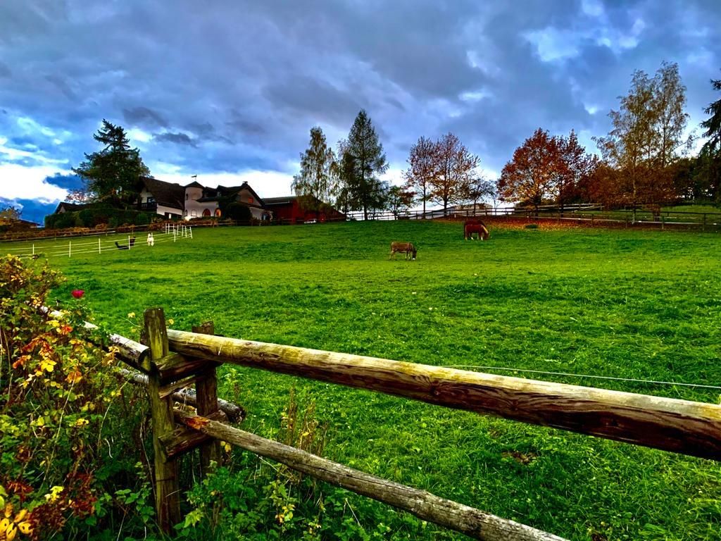 Le domaine Pfauenhof est un rêve pour les enfants et les amoureux des chevaux. Équitation guidée sur notre manège panoramique, promenades guidées, randonnées avec des poneys, soirées barbecue avec feu de camp au bord du ruisseau, jeux équestres, poulinières, chevaux de selle et poneys, l'adorable chien de ferme Bruno, des lapins et des lièvres, des poules et nos bovins Galloway dans nos pâturages.