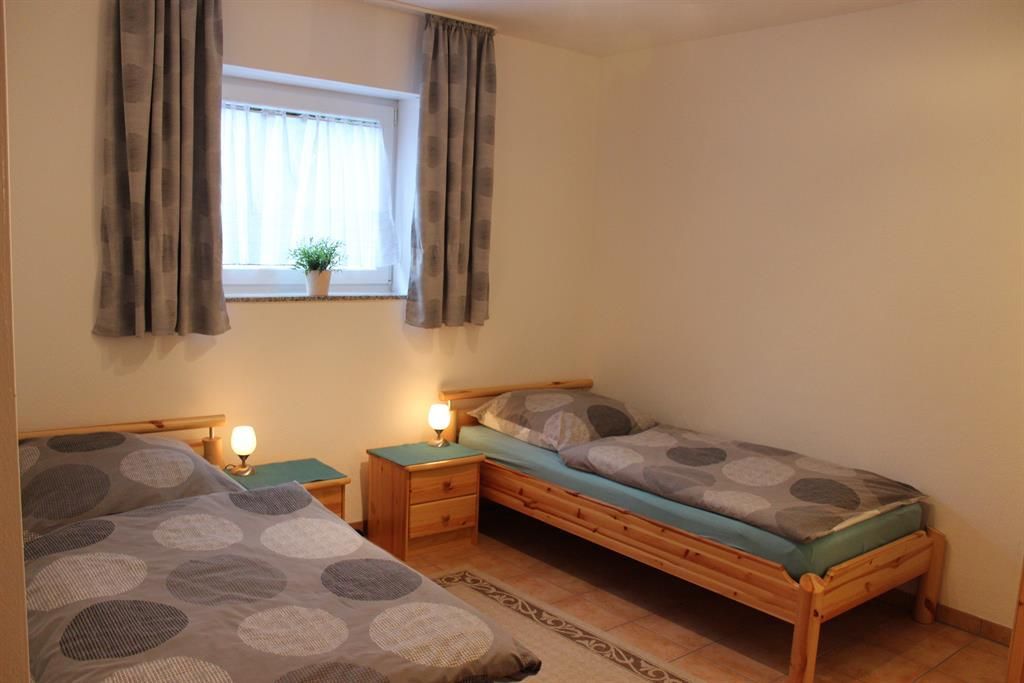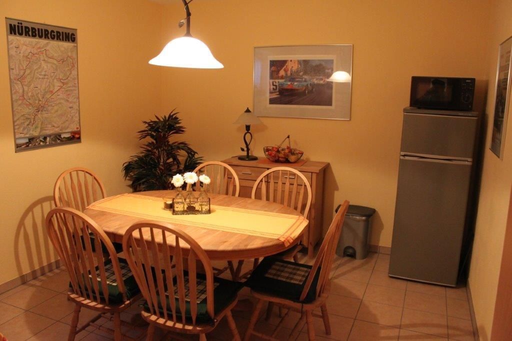 Notre appartement de vacances "Steffi" est situé près du centre dans la rue à circulation réduite "Am Brückelchen". De là, il faut environ 5 minutes à pied pour commencer votre randonnée sur le sentier de l'Eifel. En seulement 10 minutes à pied, vous atteignez le centre de la petite ville avec ses piscines couvertes et de plein air, ses courts de tennis, sa salle de tennis, son manège, ses restaurants, son musée d'histoire locale et d'histoire naturelle, son lac artificiel, son église du Sauveur avec sa villa Sarabodis, etc... L'appartement de vacances se trouve au premier étage de notre maison. Une oasis de confort et de bien-être vous attend sur 90 m², dans laquelle jusqu'à 4 personnes peuvent laisser le quotidien derrière elles. Après une longue journée active, vous aurez l'occasion de vous détendre dans le grand salon en lisant un livre ou en regardant un film (télévision par satellite avec écran plat). Si vous aimez cuisiner, c'est un jeu d'enfant dans notre cuisine intégrée entièrement équipée. Du plan de cuisson à 5 plaques au four, en passant par le four à micro-ondes, le réfrigérateur, le lave-vaisselle, le congélateur, la machine à café, le grille-pain, le cuiseur à œufs, les poêles à frire, les casseroles et les couteaux professionnels, tout y est. Vous pourrez profiter du soleil de midi et du soir sur le balcon couvert, équipé de meubles en teck. Votre animal domestique est également le bienvenu dans notre appartement de vacances. Veuillez annoncer votre compagnon animalier par téléphone, tél. 06591/5268.