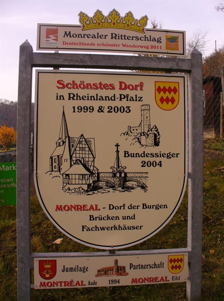 La gastronomie comprend à Monreal 2 restaurants et 2 cafés ainsi qu'une boulangerie (ouverte uniquement le samedi matin). Les chemins de promenade et de randonnée sont nombreux chez nous à Monreal : Karbachweg, Eifelkamino, Jakobsweg, 7 sentiers de randonnée de l'IVV, les sentiers de rêve de l'Eifel, ainsi que le sentier de randonnée de la vallée de l'Elz jusqu'à la Moselle. Nous pouvons également les documenter chez nous avec des cartes.
