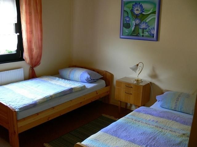 L'appartement est situé dans une rue latérale calme, à la lisière de la forêt. L'appartement se trouve au rez-de-chaussée. La cuisine est équipée d'un coin repas, d'un lave-vaisselle, d'une cuisinière combinée, d'un four à micro-ondes, d'une cafetière électrique, d'une bouilloire électrique et d'un salon avec télévision par satellite. Grande terrasse avec meubles de jardin, four à griller et jardin avec pelouse. Carport et table de ping-pong disponibles