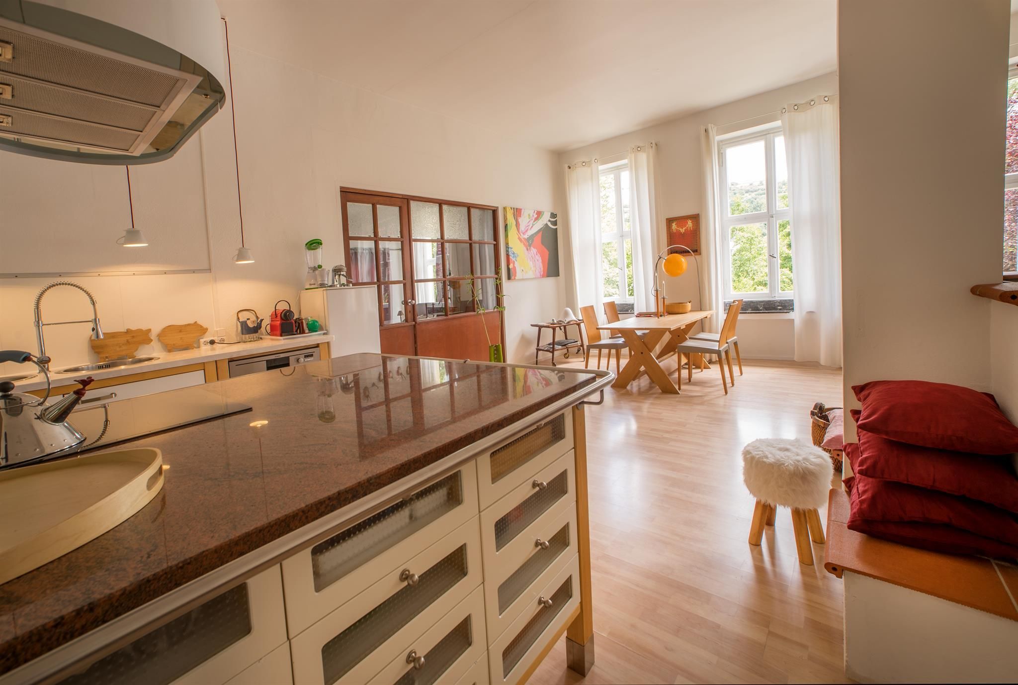Il en résulte la situation géniale, séparée du village par une rivière, situation isolée directement au bord de la forêt et idéale pour